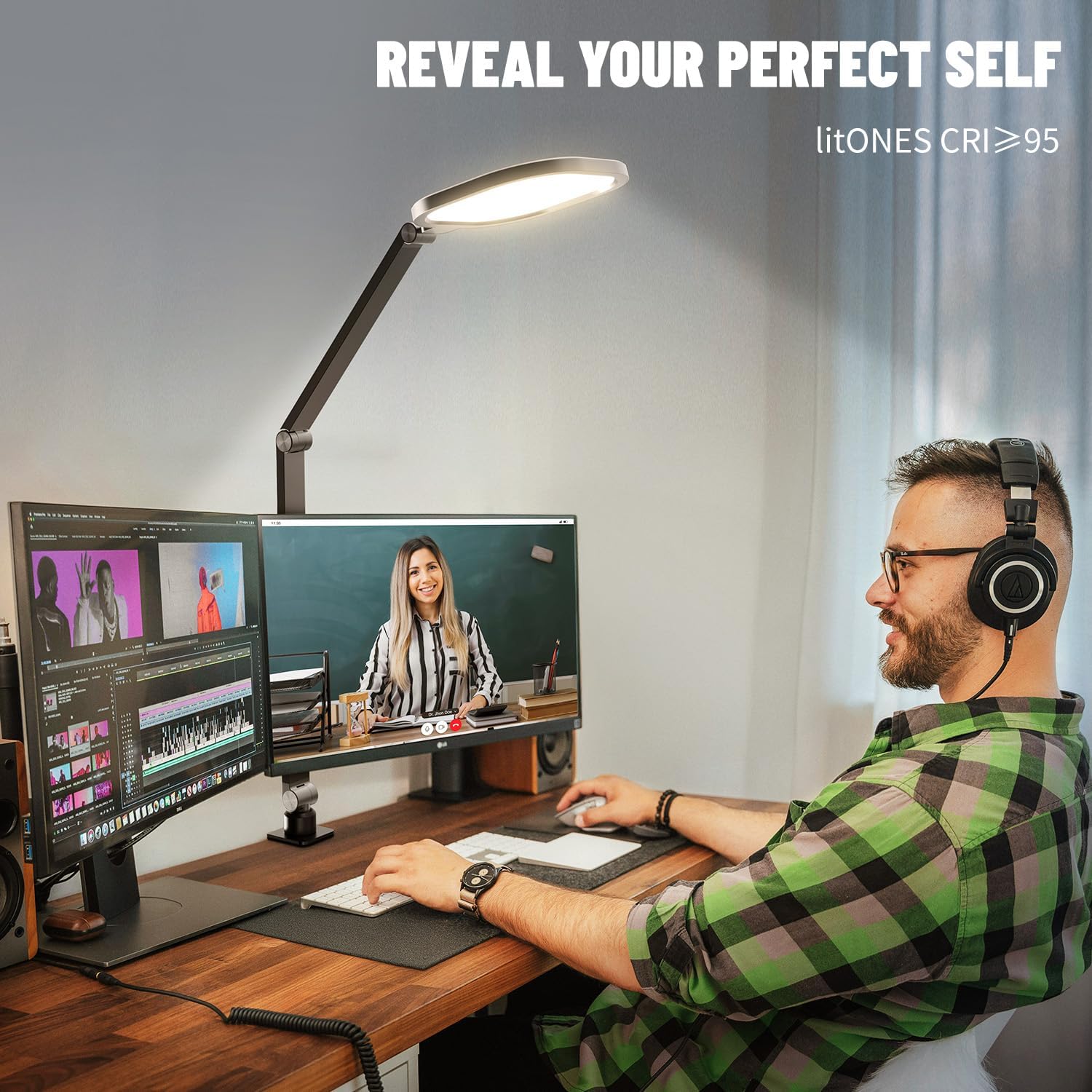 - 【Ultra-Bright, Wide Coverage for Maximum Productivity】--- Upgrade your workspace with the LitONES LED Clamp Desk Lamp—designed to deliver ultra-bright, even illumination across Medium to large desks with 84 high-lumen LED beads, 26" adjustable arm and a 7" x 7" ultra-wide lighting panel. Whether you're working from home, tackling professional tasks, or need reliable desk lighting, this lamp ensures consistent, flicker-free brightness, thus increasing one's productivity;