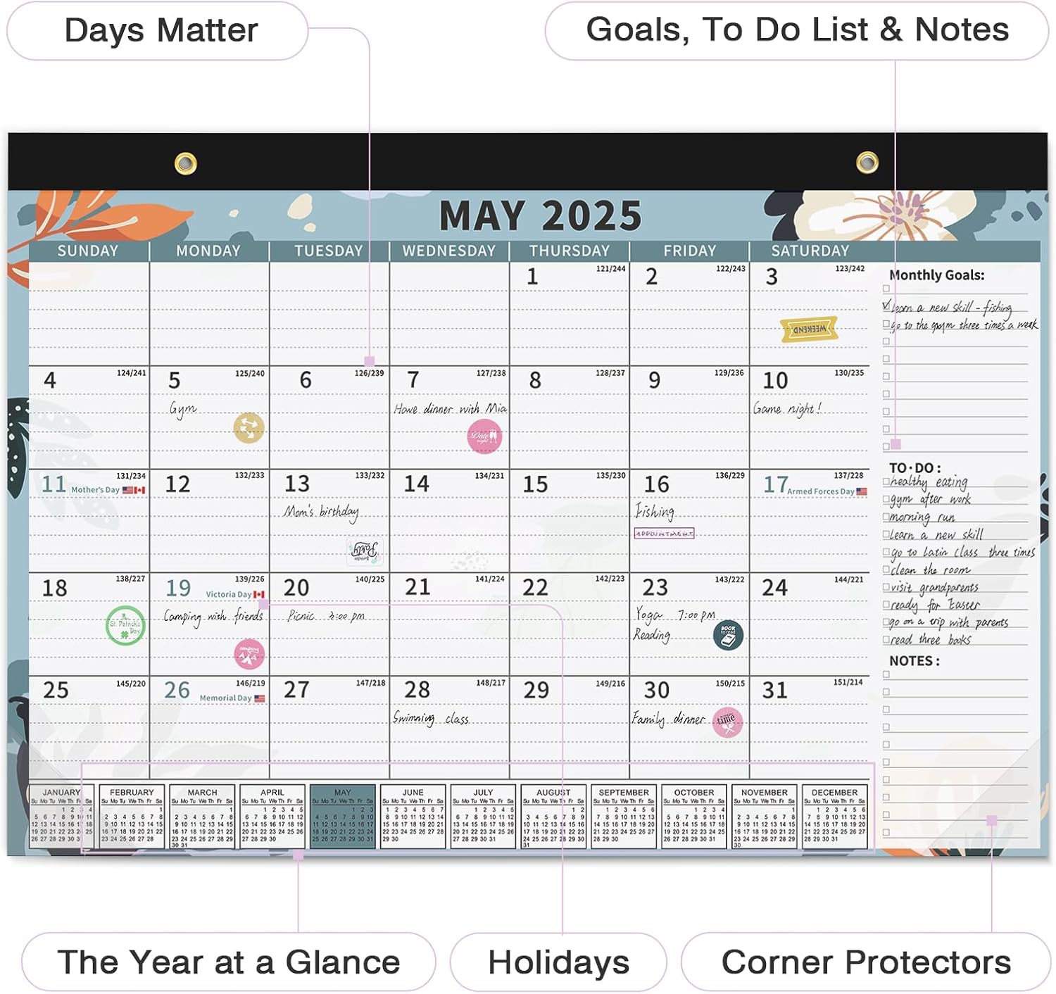 Ospelelf 2025-2026 Calendar Magnetic Desk Wall Desktop Monthly Planner from January 2025 to June 2026 Large To Do Pad with Plastic Cover for Office 17" X 12" Floral