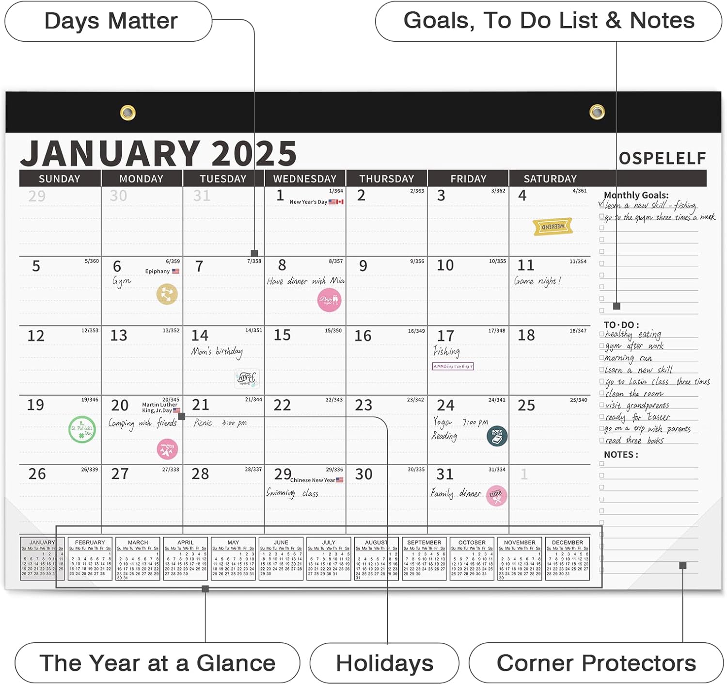 - Humanized Design: The calendar set includes a detachable string, a magnetic sticker and planning stickers. The wall calendar can be easily hung through the string and magnetic sticker provided. A variety of planning stickers can also add some interest to the calendar.