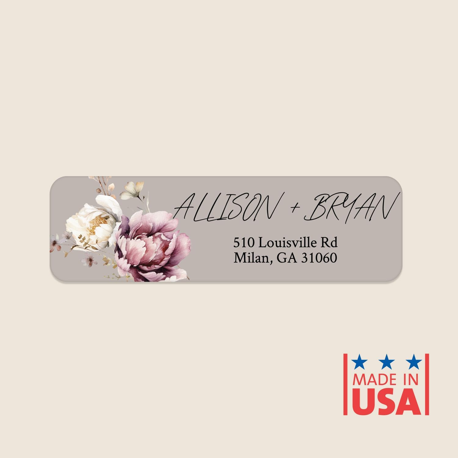 Taupe Watercolor Floral Rolled Address Labels / 250 Personalized Return Address Labels/Designer Address Stickers in Elegant Plastic Dispenser
