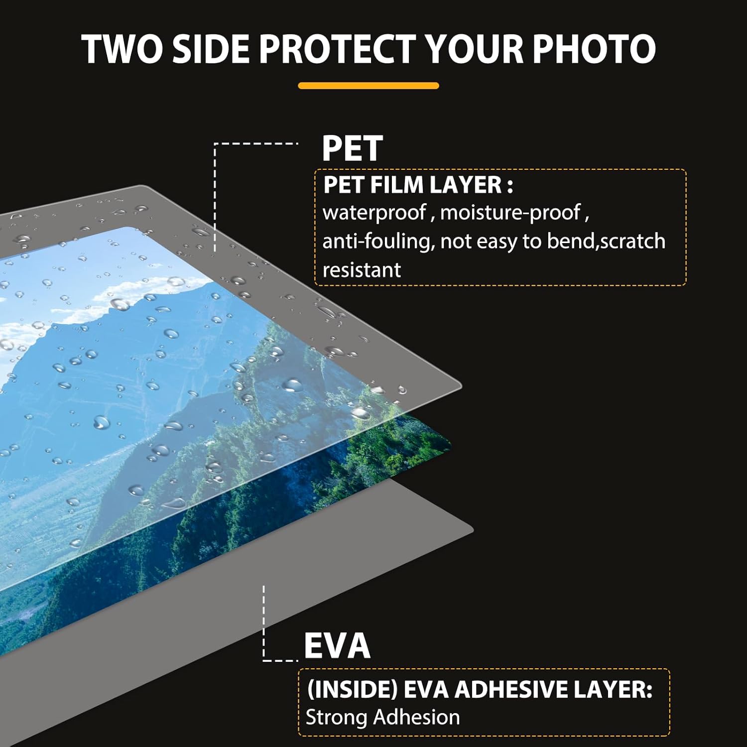 - Premium Material: Crystal clear, glossy sheen, sturdy and Premium material. Laceration resistant, double coating, anti-stain, sturdy and waterproof, protect your document from scratching