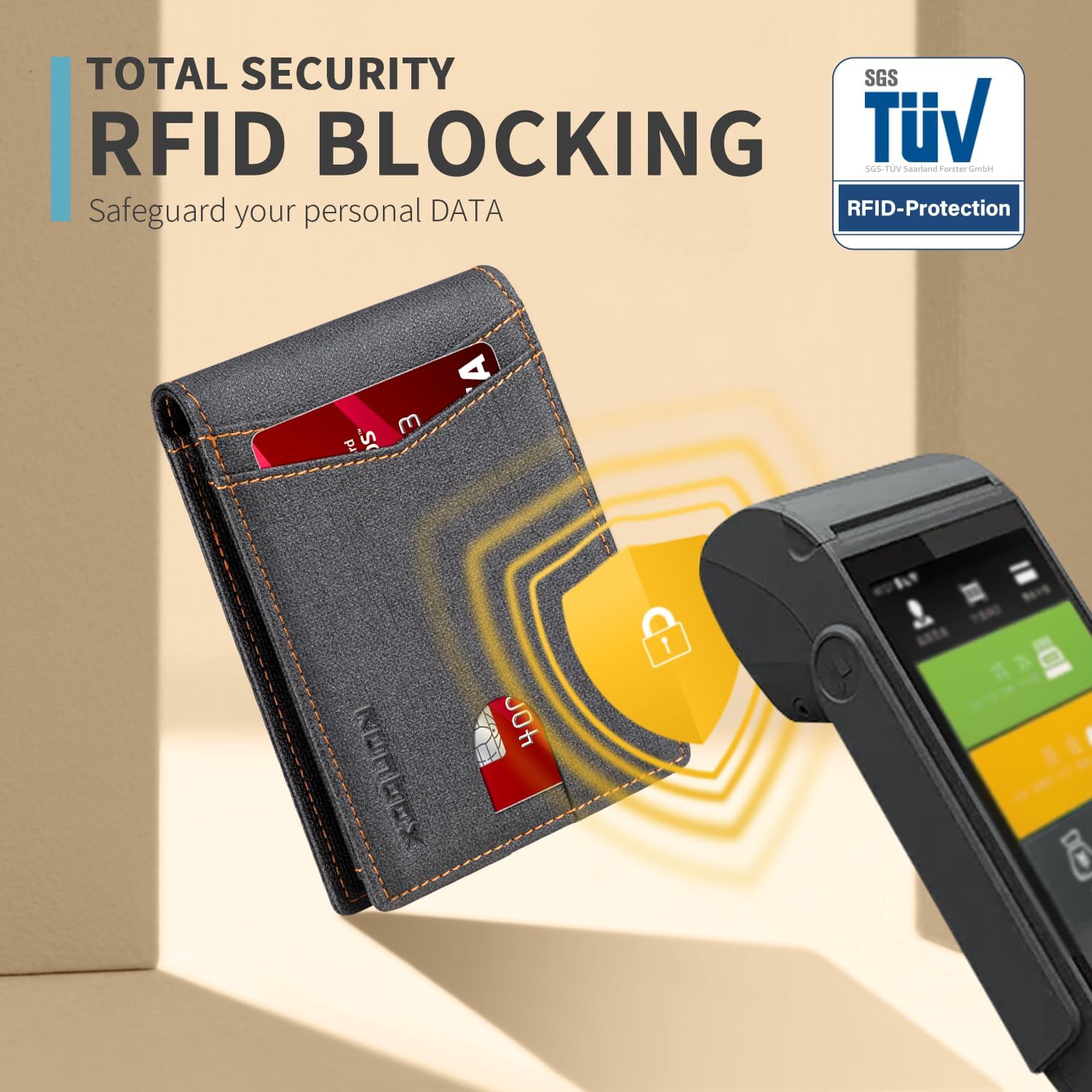 • RFID Blocking - Our wallets are equipped with advanced RFID SECURE Technology, a unique metal composite, engineered specifically to block 13.56 MHz or higher RFID signals and protect the valuable information stored on RFID chips from unauthorized scans. License and ID cards will be protected effectively. Blocking the 13.56 MHz band and protect against data theft by RFID scanners