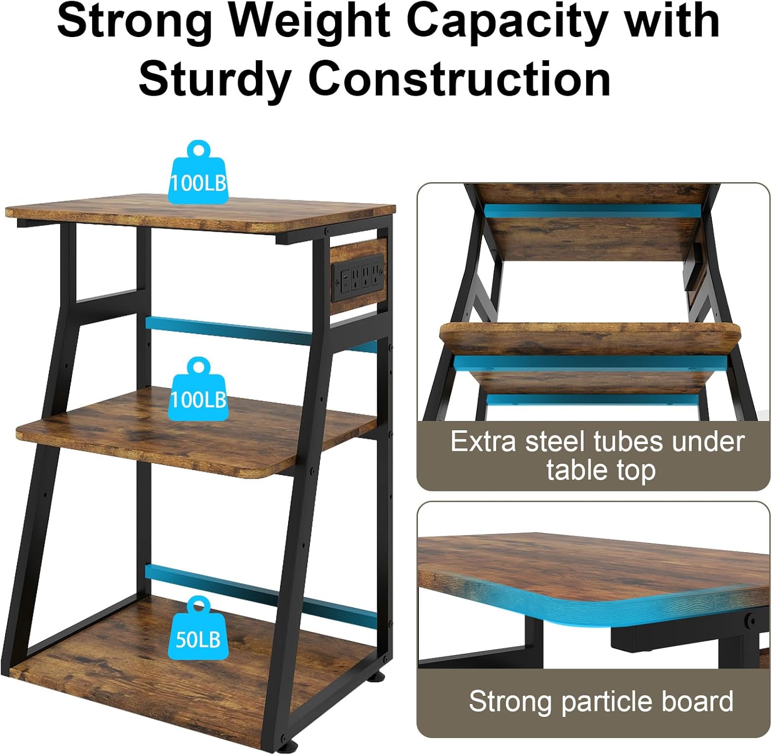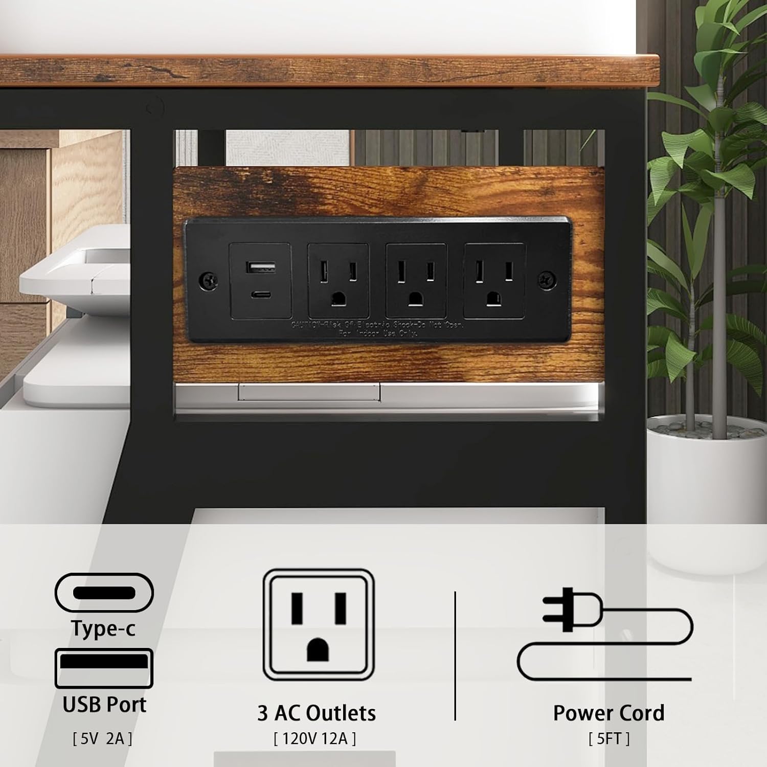 - 【Built-in Power Outlets】The printer table for home office is configured with charging station on the side panel. There are 3 AC outlets,1 Type-C and 1 USB Port that allows for simultaneous charging of the printer, computer host or shredder, and your laptop, phones. We provide 5ft length power cord for your flexible use of position.