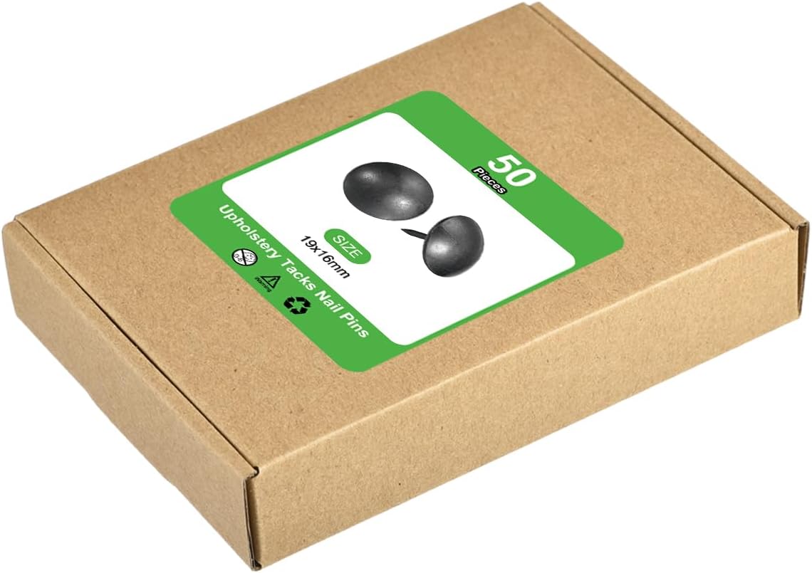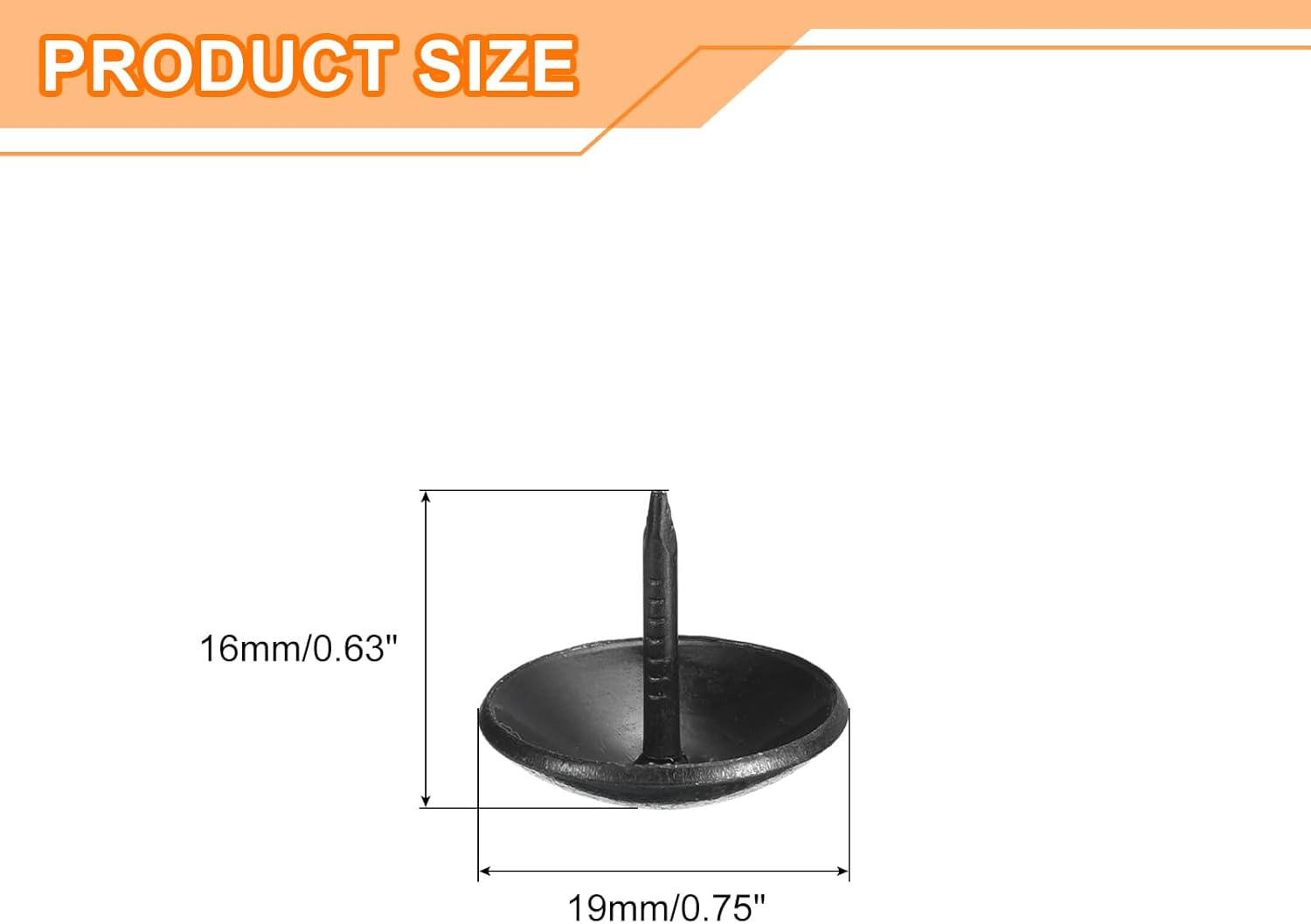 - Specifications: Material: Carbon steel; Color: Black; Diameter of nails head: 19mm/0.75inch; Shank length: 16mm/0.63inch; Package Content: 50Pcs x Upholstery Tacks Nail Pins