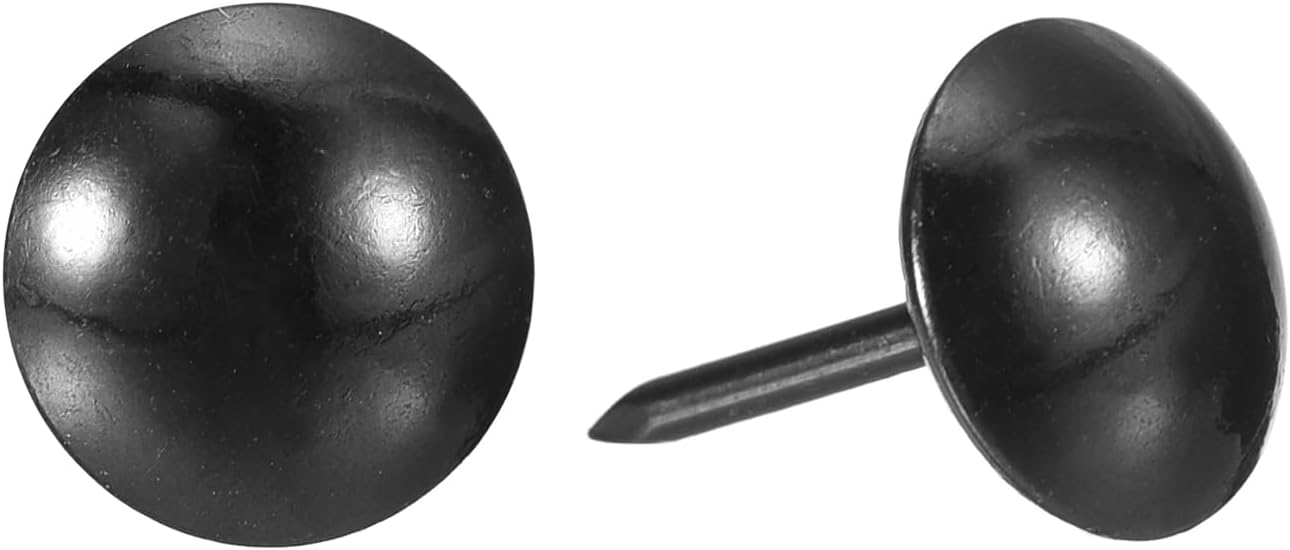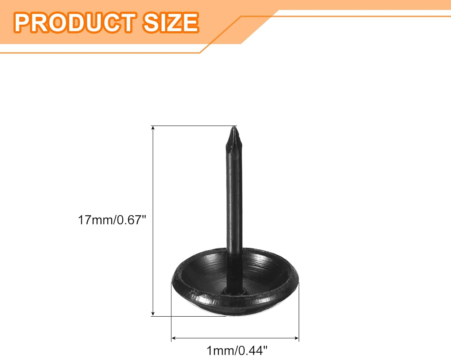 - Specifications: Material: Carbon steel; Color: Black; Diameter of nails head: 11mm/0.44inch; Shank length: 17mm/0.67inch; Package Content: 1000Pcs x Upholstery Tacks Nail Pins