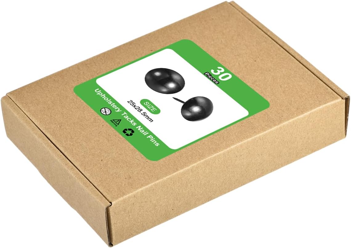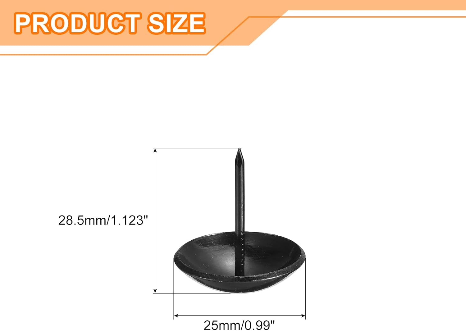 - Specifications: Material: Carbon steel; Color: Black; Diameter of nails head: 25mm/0.99inch; Shank length: 28.5mm/1.123inch; Package Content: 30Pcs x Upholstery Tacks Nail Pins