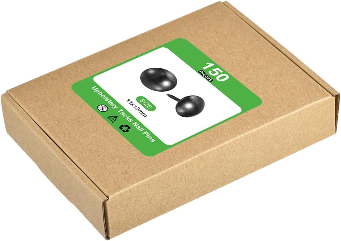 - Specifications: Material: Carbon steel; Color: Black; Diameter of nails head: 11mm/0.44inch; Shank length: 13mm/0.512inch; Package Content: 200Pcs x Upholstery Tacks Nail Pins
