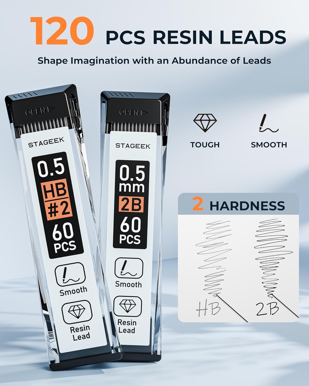 - HB&2B Hardness: The HB lead is ideal for everyday writing, offering balanced hardness, while the 2B lead is perfect for shading and detailed drawing. These leads are durable, resistant to breakage, and produce low dust, providing smooth, effortless writing, Requires no sharpening