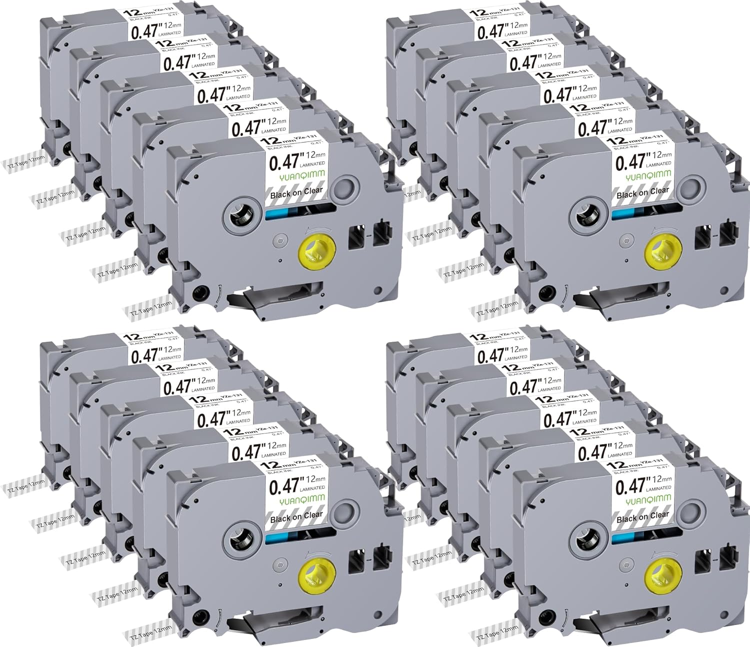 - Package includes: 20-Pack label tape compatible with Brother Ptouch TZe-131 TZe131 TZ131 TZ-131 TZe TZ tape 12mm 0.47 laminated clear tape