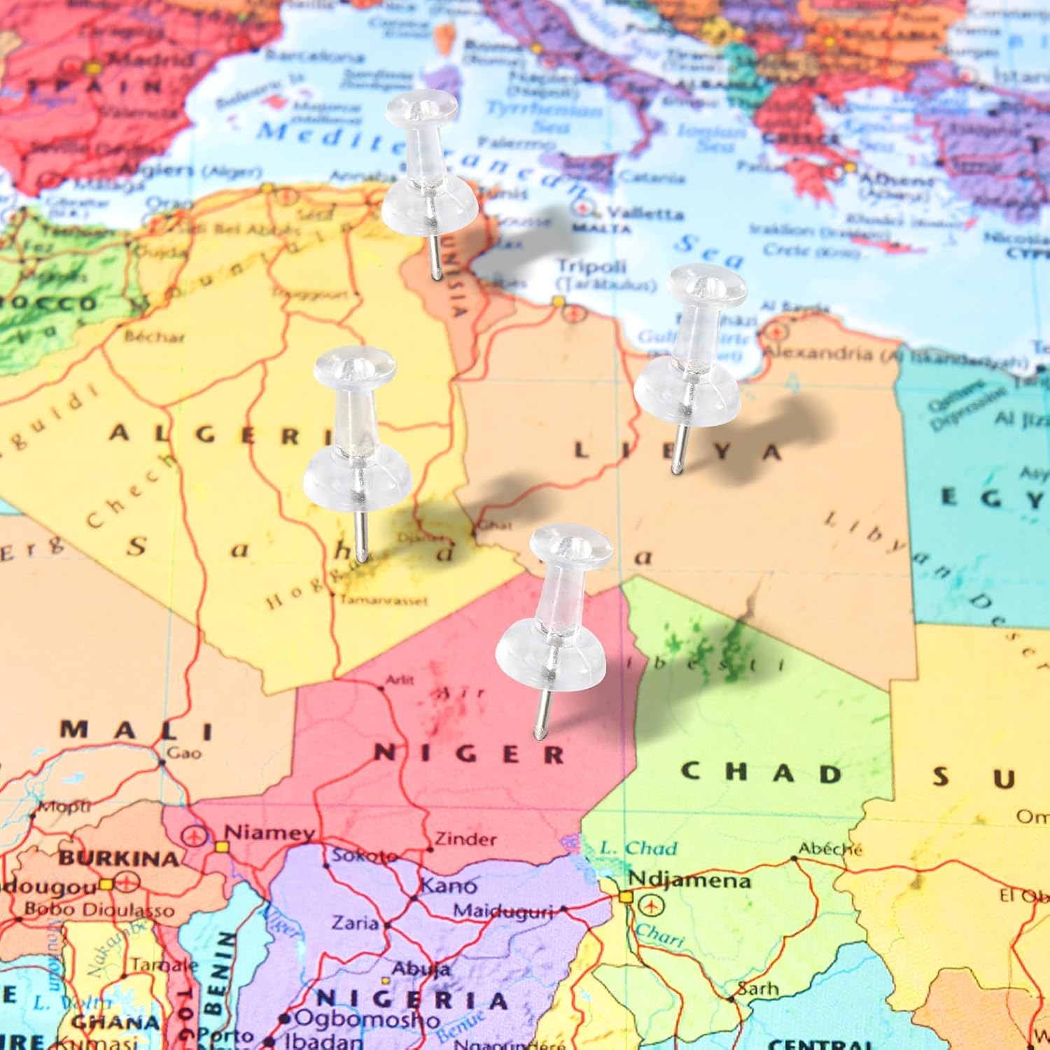 120Pcs Push Pins for Bulletin Board, Thumb Tacks for Cork Board, Clear Plastic Head, Steel Tip, Thumbtacks for Wall Poster Photo Maps Pictures Office Home Decor