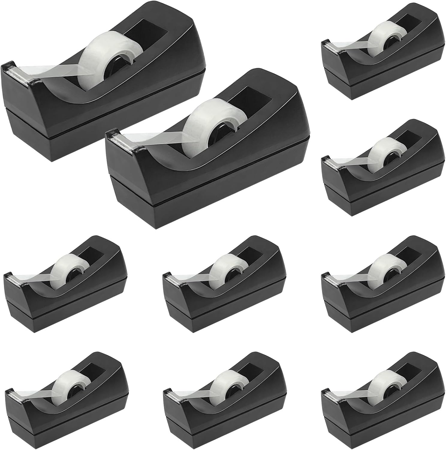 10 Pack Desktop Tape Dispenser Bulk Black Tape Roll Dispenser Non Skid Base Desk Tape Holder for Office School Home (Tape Not Included)