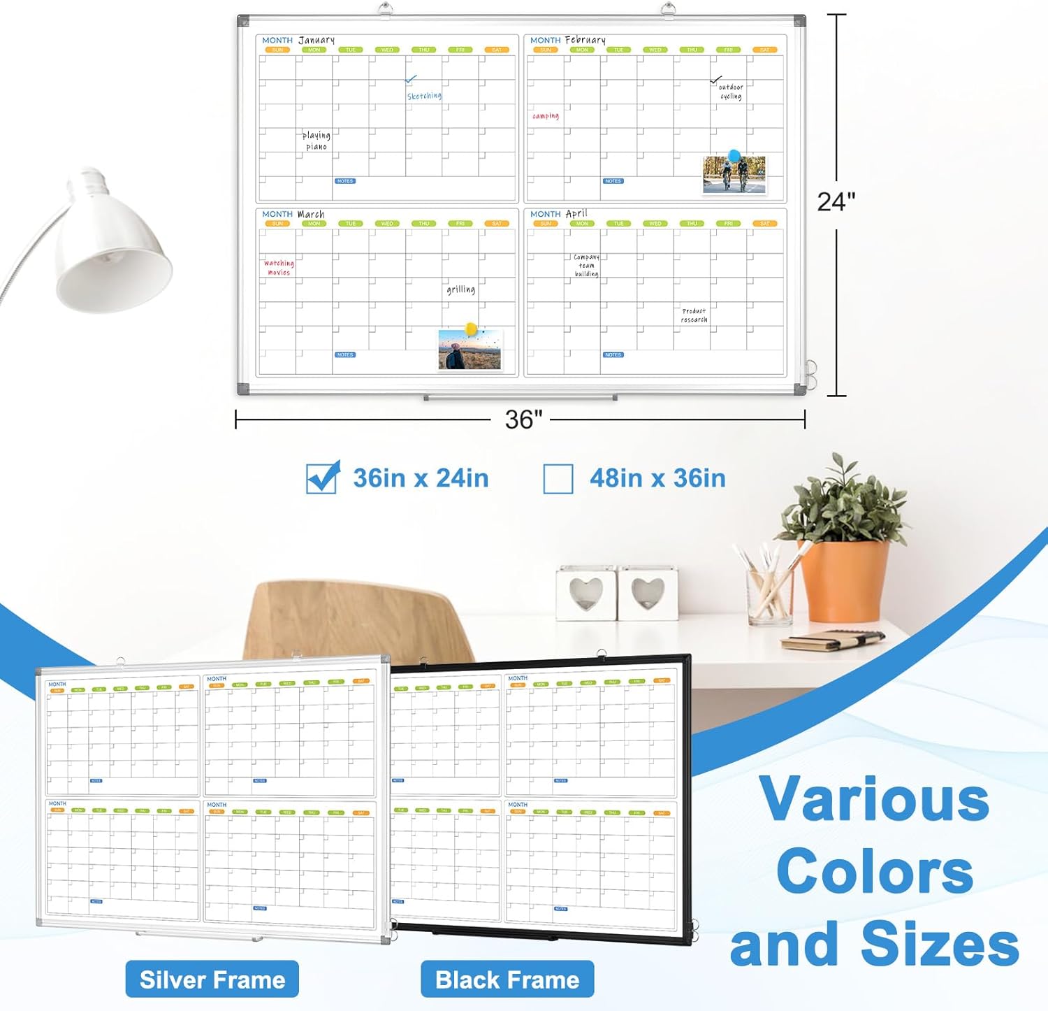 - 【4 Month Calendar Whiteboard】The 4 months dry erase calendar lets you easily plan ahead the next quarter's work, study, or goal-oriented projects in advance. Keep everything organized, visualized, and easy to track. Double-sided dry erase board features one side as a calendar and the other as a blank whiteboard, offering double the writing space for your daily to-do lists, weekly tasks, monthly plans, and reminders.