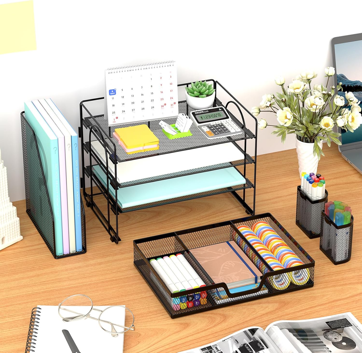 - 【High-quality Materials】The mesh desktop file organizer is made of lightweight and durable metal mesh, reinforced with a sturdy steel frame, and the outer layer is epoxy-coated, rust-proof and very durable, with long-lasting strength and reliable performance.