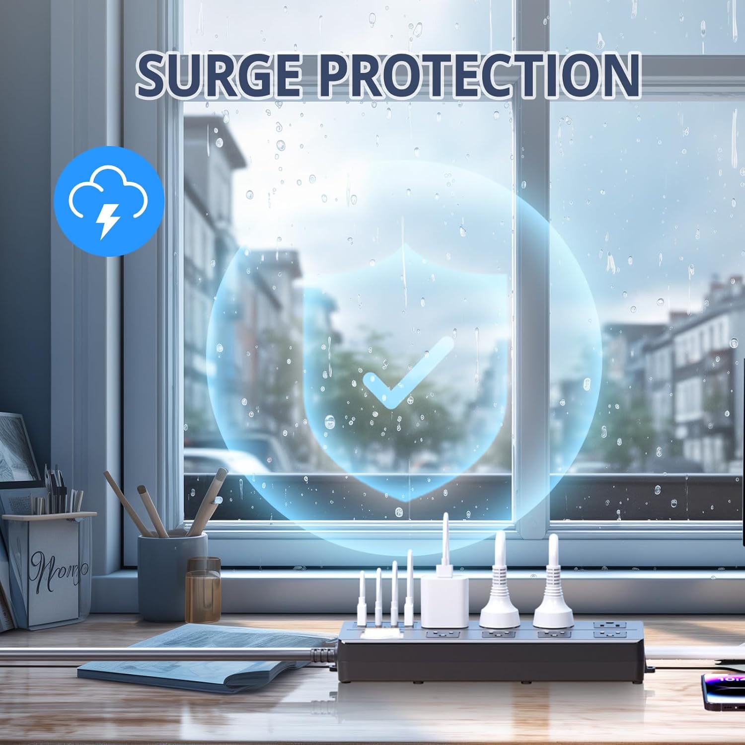 - 【12 IN 1 USB-C Power Strip】: Simplify your charging with this 15-foot power strip featuring 8 outlets, 2 USB-A, and 2 USB-C ports.Charge up to 10 devices simultaneously with 5V/3.1A/15.5W USB output. Compatible with most devices, it eliminates clutter and maximizes efficiency.