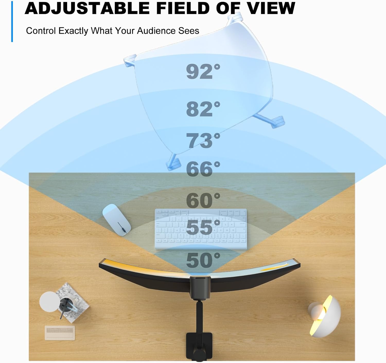 - 【Adjustable Viewing Angle 】Nisheng 4k webcam with a 50°-92° field of view, Easily adjustable using the "+/-" buttons on the remote control, A wide-angle camera brings the benefit of allowing you to bring more content into the picture when video conferencing or streaming