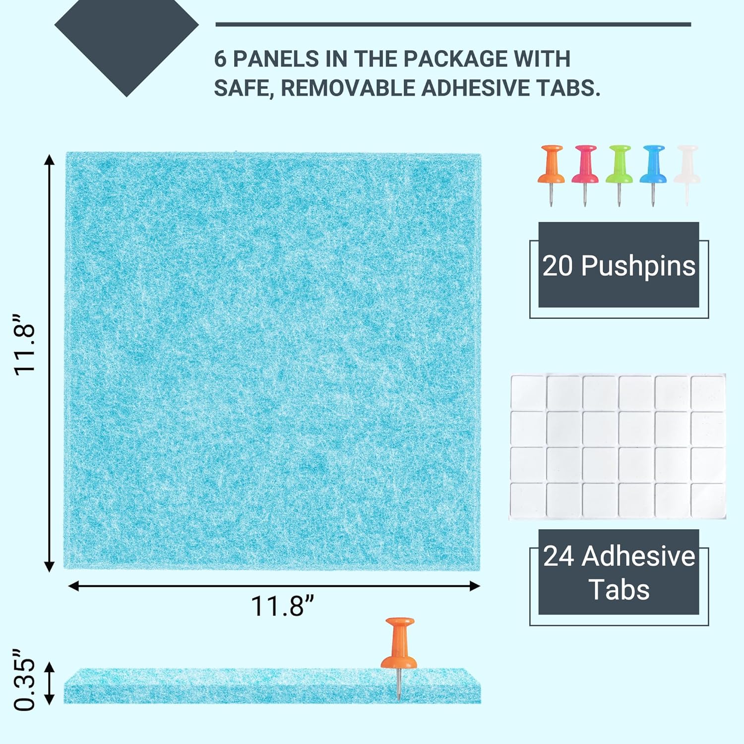 - Safe Removable Adhesive: 11.8 "x11.8" felt panels with 24 acrylic double-sided tapes, safe for your walls, suitable for working perfectly on flat, textureless, dust-free, dry surfaces and can be easily removed without damaging the wall paint, a perfect solution to pin your notes and messages in any office, home or commercial environment