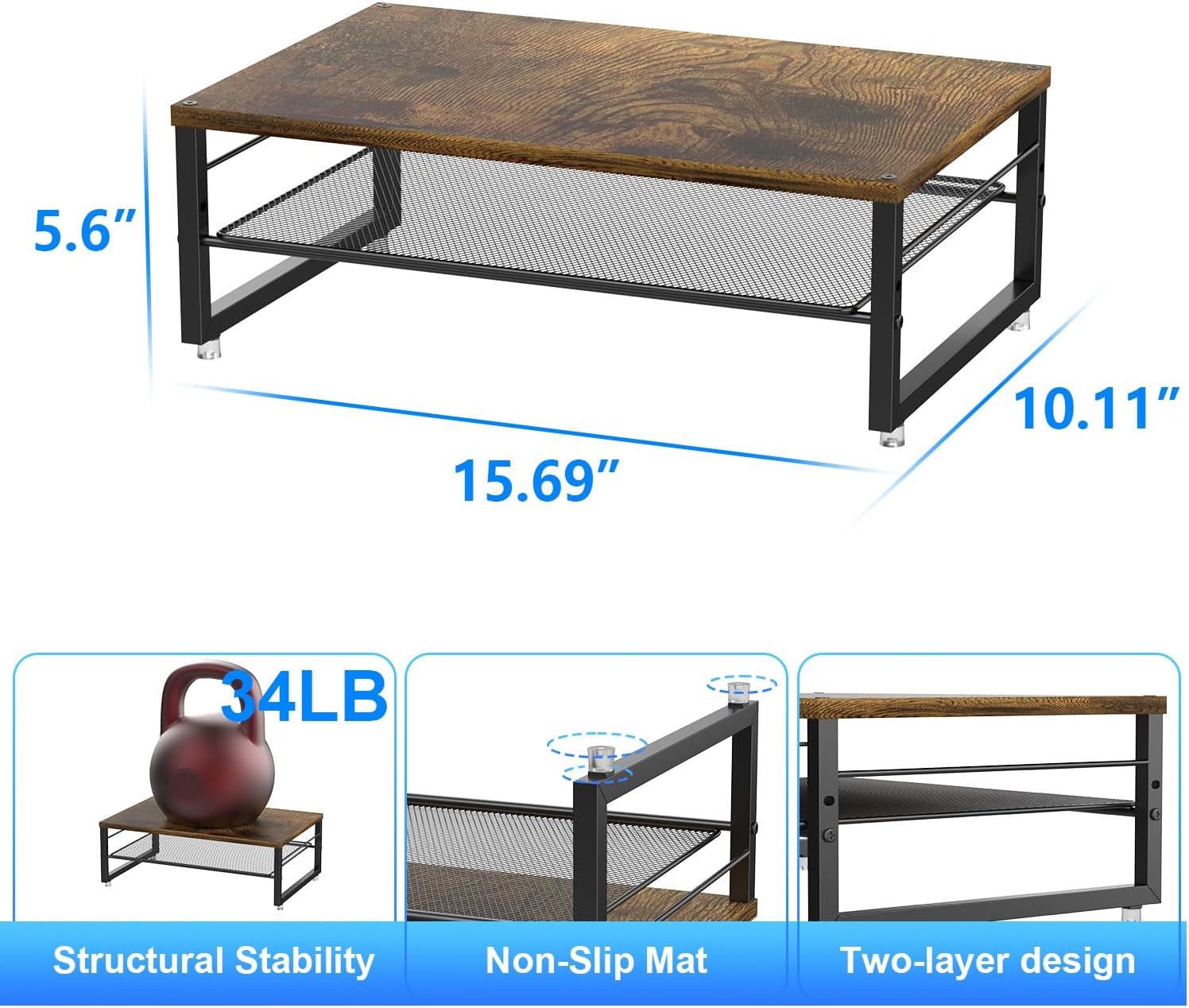 - 【Broad Compatibility】: The monitor stand riser has a universal size design that is compatible with printers, computers, Telephone and laptops. It features a ventilated design to prevent overheating. The non-slip rubber pads provide stability during use.