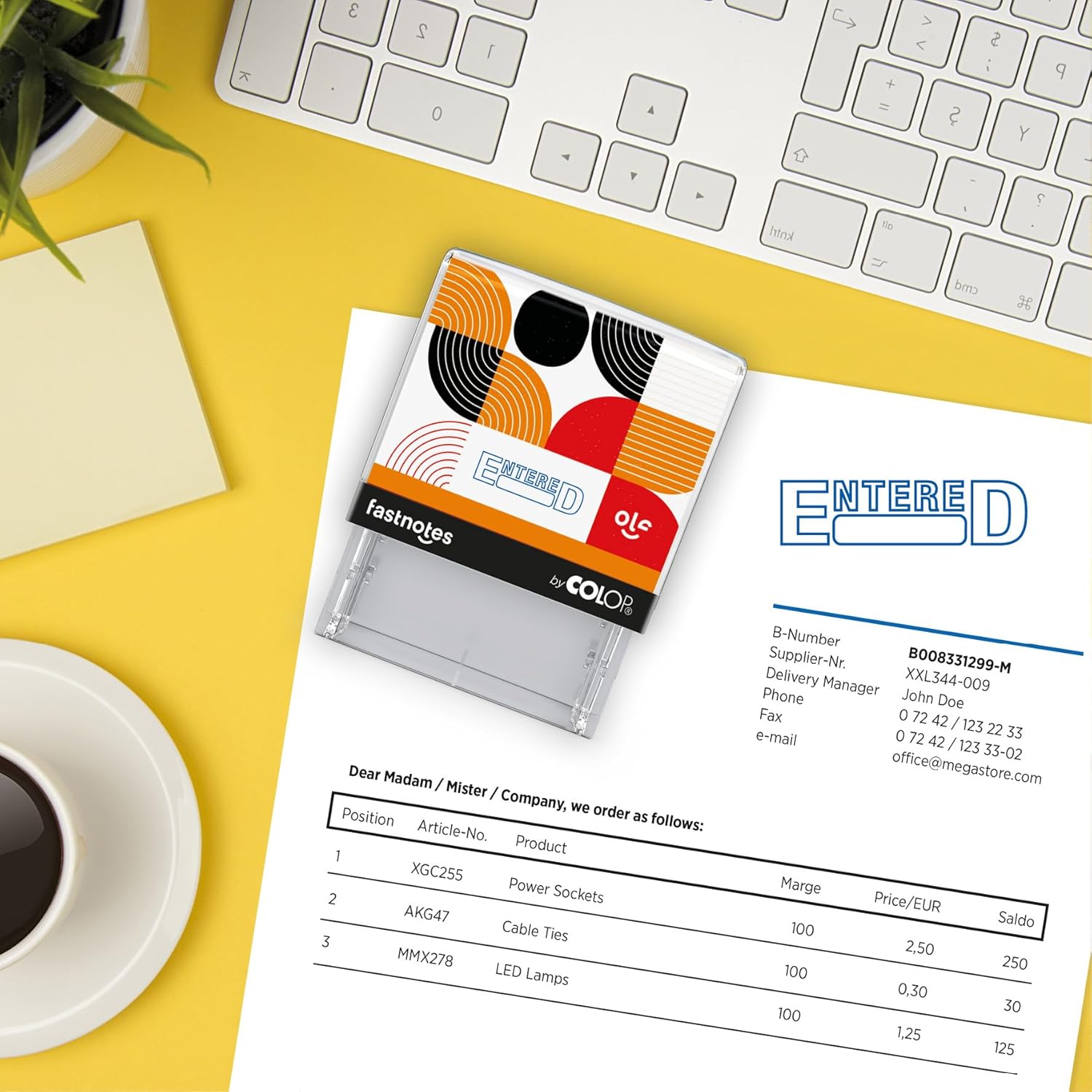 Fastnotes Entered Self-Inking Rubber Stamp by COLOP - Great for Office Documents, Notary, Warehouse, Accounting Paperwork, Business, and Legal Documentation - Blue Ink (Entered- Blue)