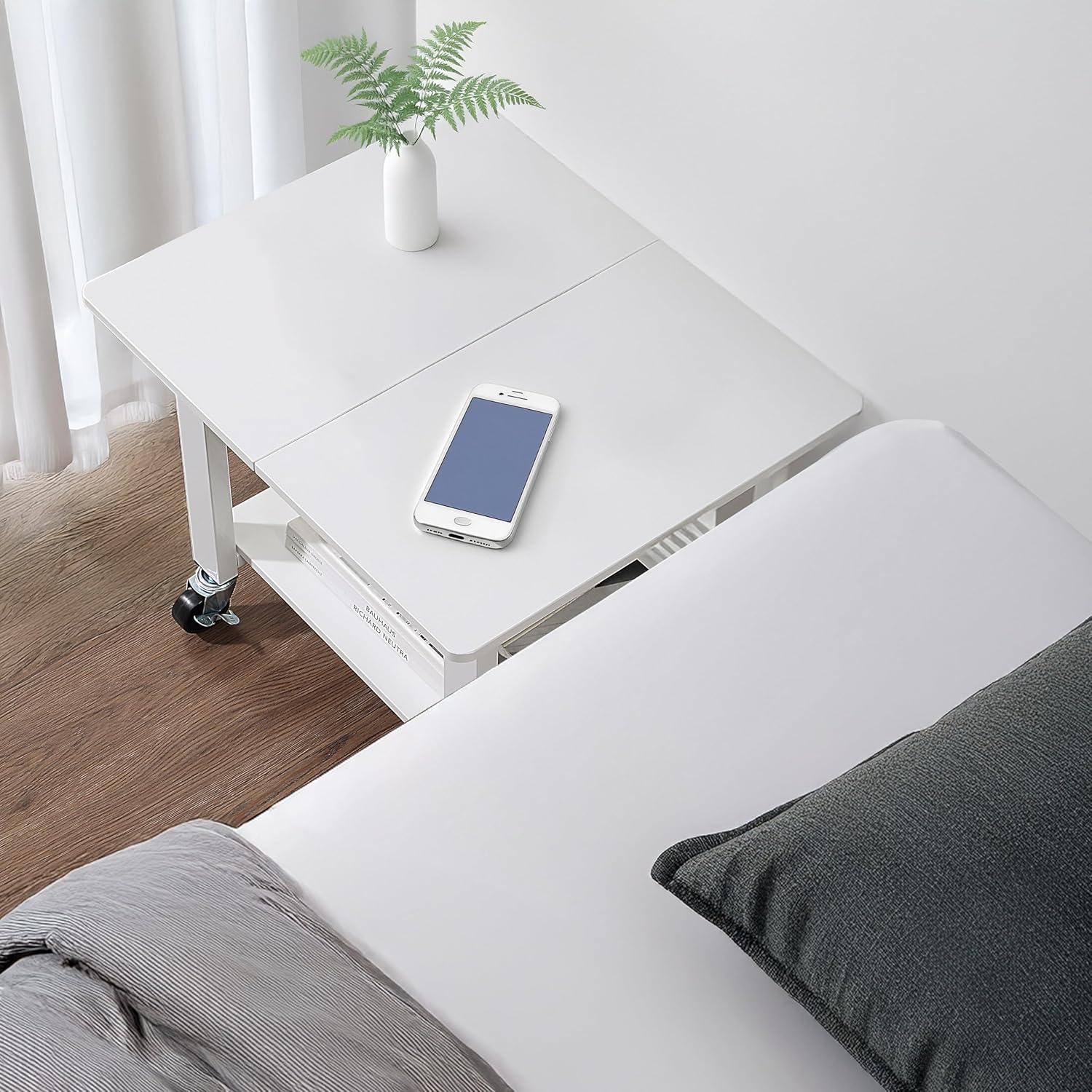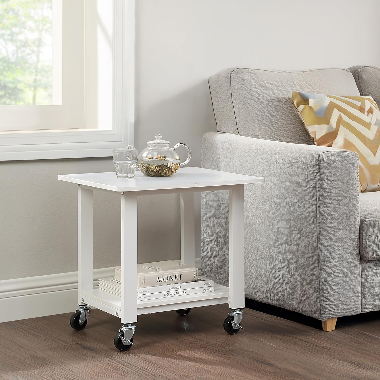 SunnyPoint 2-Tier Under Desk Printer Stand with Storage Shelf and Steel Frame, Industrial Mobile Printer Cart Holder with Lockable Wheels for Home and Office (WHT)