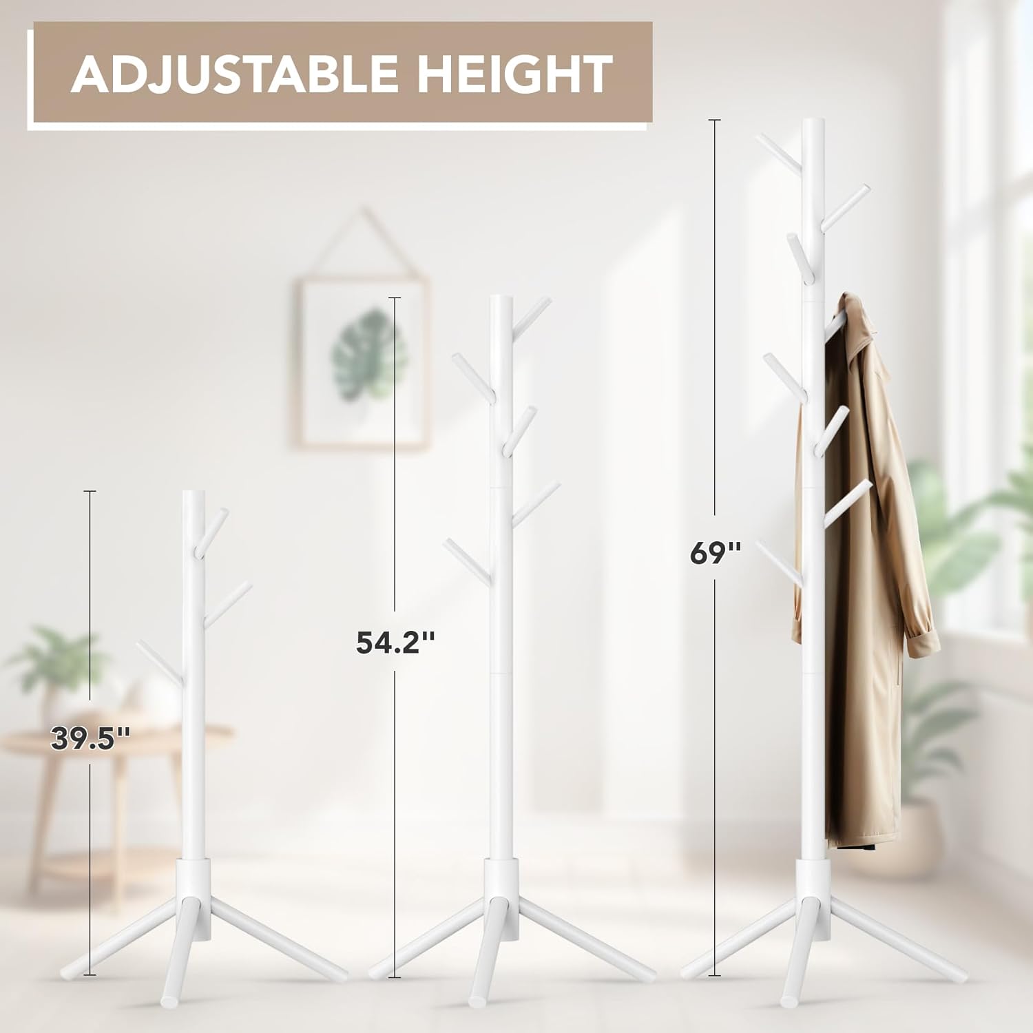 - Adjustable Height: It features a four-segment design with three height options: 39.5", 54.2", 69". You can customize the height and hook of the coat rack according to your preference. Suitable for children, youth and adults, free to adjust as needed