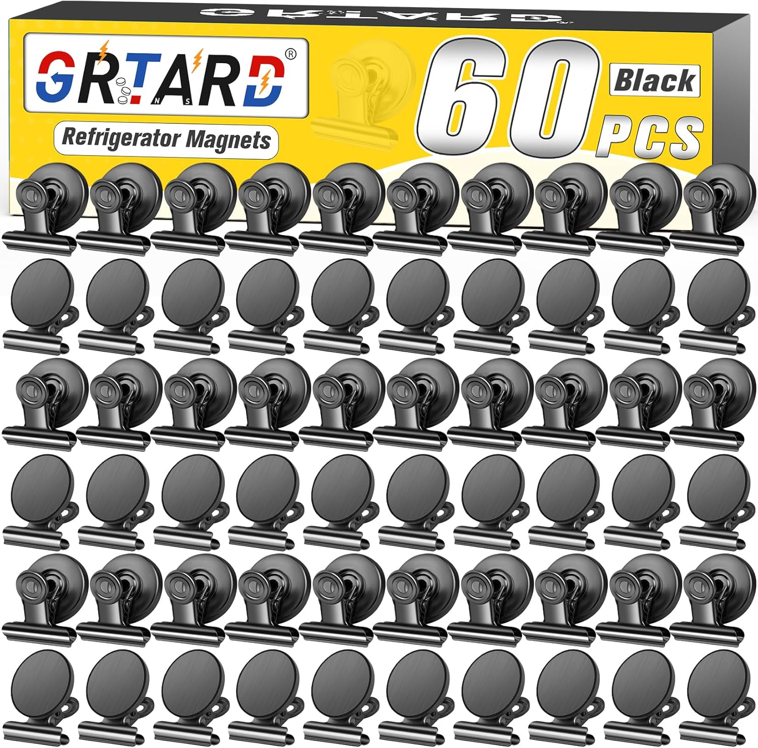 Grtard 60 Pack Magnetic Clips Heavy Duty, Black Magnet Clips for Fridge, Refrigerator Magnets, Strong Magnetic Clip, Scratch Free Magnets with Clip for Whiteboard, Refrigerator, Cruise, Locker