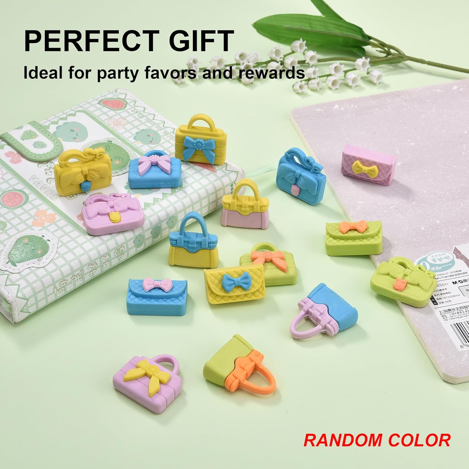 24Pcs Cute Bag Shape Erasers for Girls Kids, Fun Handbag Pencil Erasers for School Classroom Supplies Birthday Party Favors