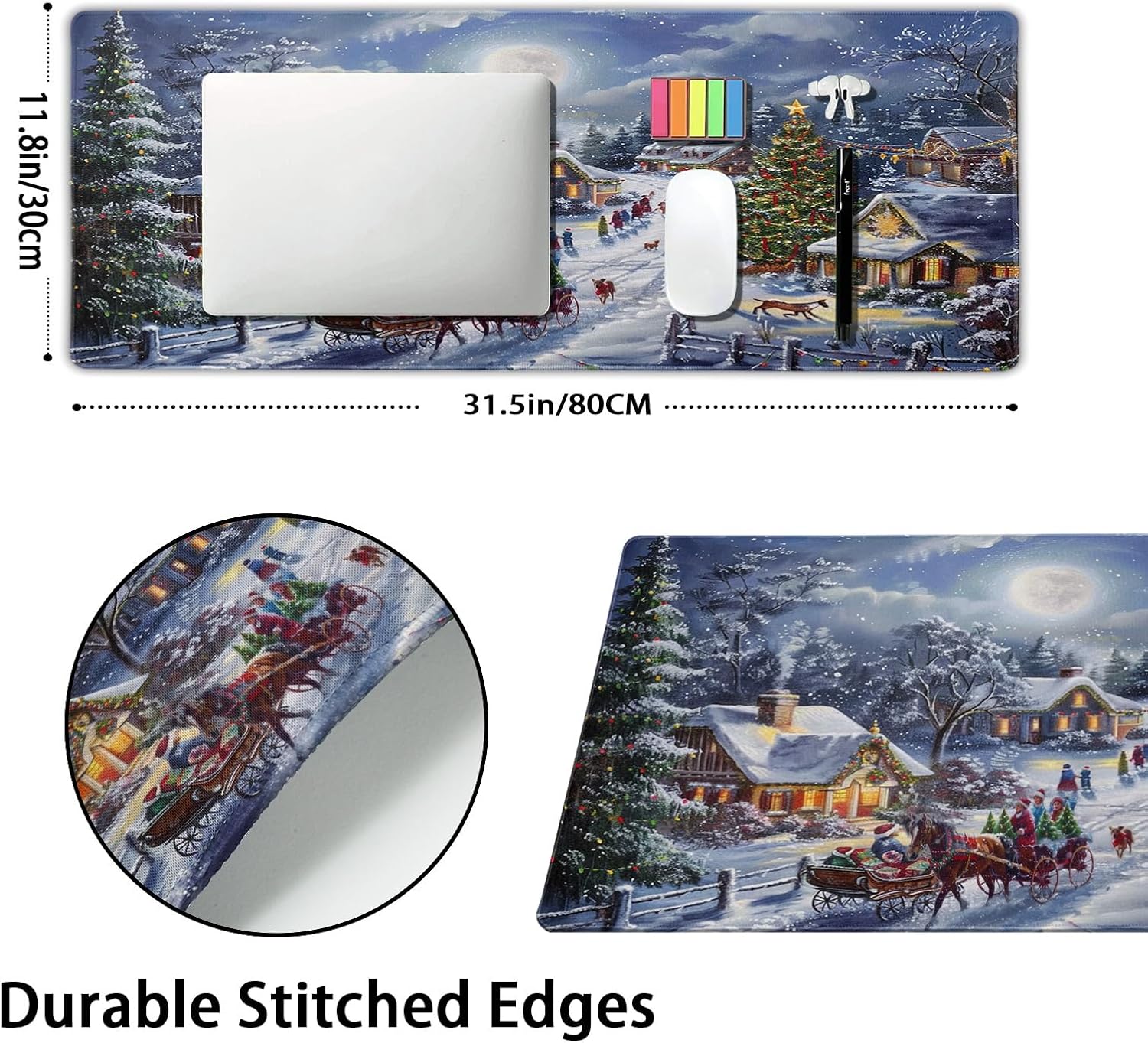 - ★【31.5×11.8 inches Large Mouse Pad】:The Christmas mouse pad on the top of desks is large enough to fit your mouse,keyboard,and other items,offering plenty of room for gaming,office work,and daily use while protecting your desk.