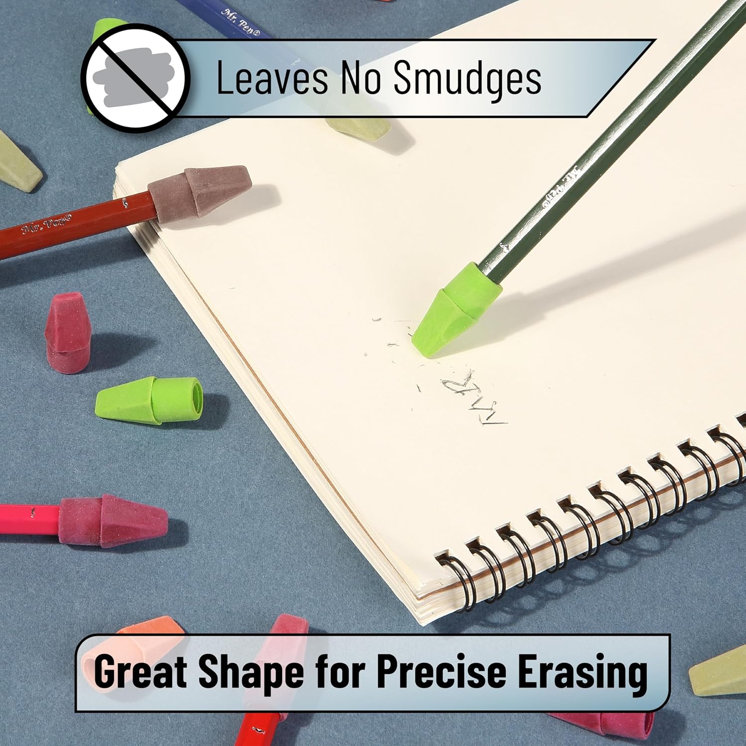 Mr. Pen- Pencil Erasers Toppers, 120 Pack, Colorful, Latex Free, No Smudge, Mr Pen Erasers for Pencils
