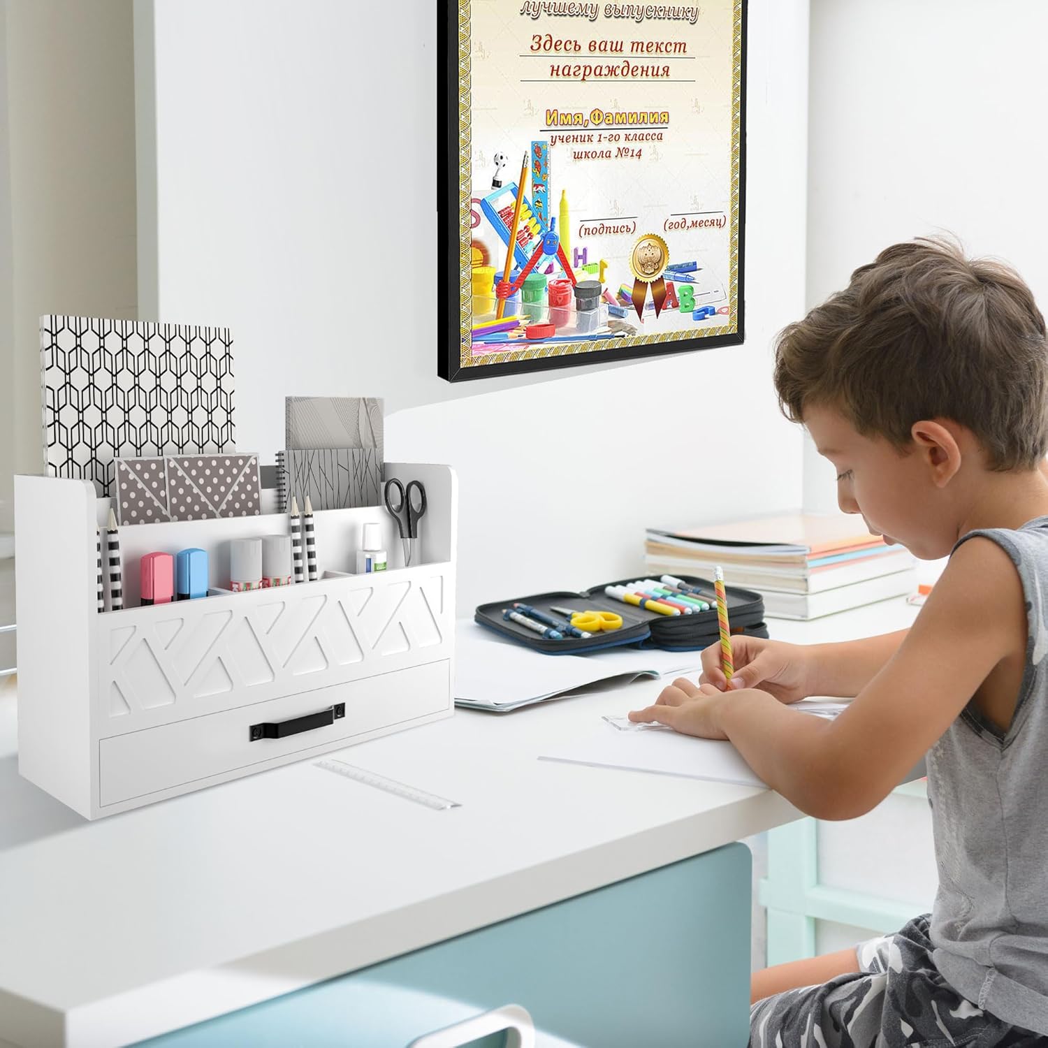 - Small Drawer organizers :This bamboo desktop file organizer has a large capacity and different storage areas.Additional storage for your files, letters, magazines, pens, stamps, paper clips and more for your office desk organization! Also you can use the drawer as a key holder or Pencil holders.