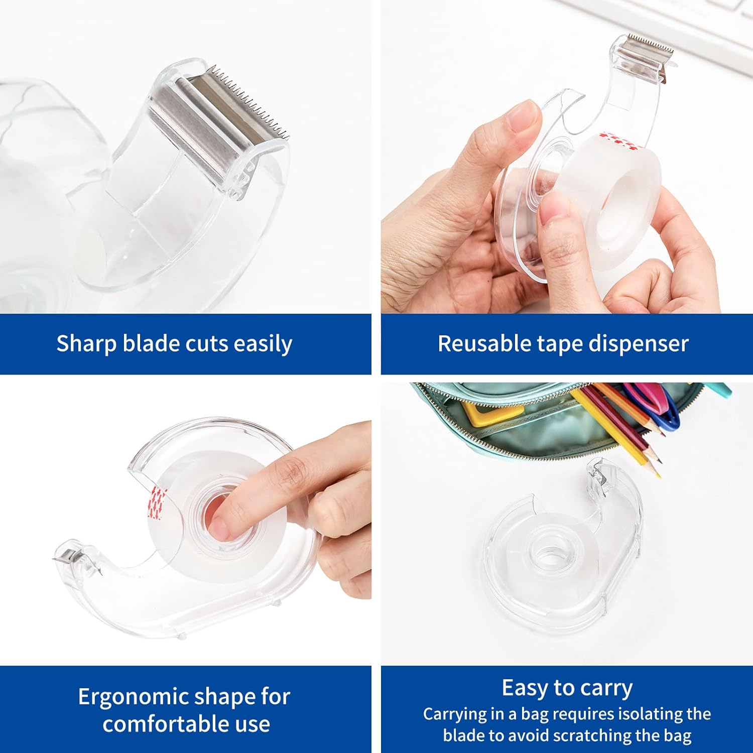 16 Rolls Transparent Tape with Dispenser, Glossy Clear Tape Refills Cute Holder Bulk for Home School Office Supplies Gift Wrap, 3/4 x 1000 Inches