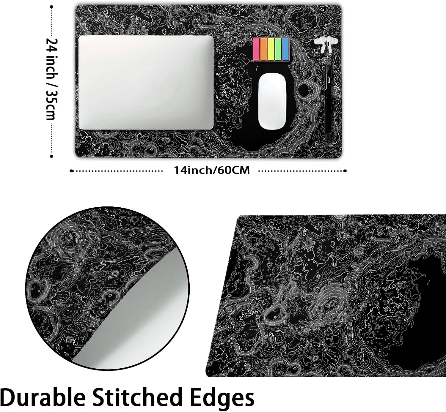 - ★【 24x14 inches Large Mouse Pad】:The Topographic mouse pad on the top of desks is large enough to fit your mouse,keyboard,and other items,offering plenty of room for gaming,office work,and daily use while protecting your desk.it is a good desk accessories & workspace organizers.
