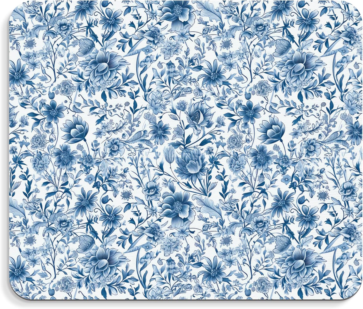 Chinoiserie Floral Mouse Pad - Blue and White Porcelain Floral Mousepad, Blue Chinoiserie Office Mouse Pads, Chinoiserie Decor, Coworker Gifts, Gifts for Employees, 9.5x8 Inches