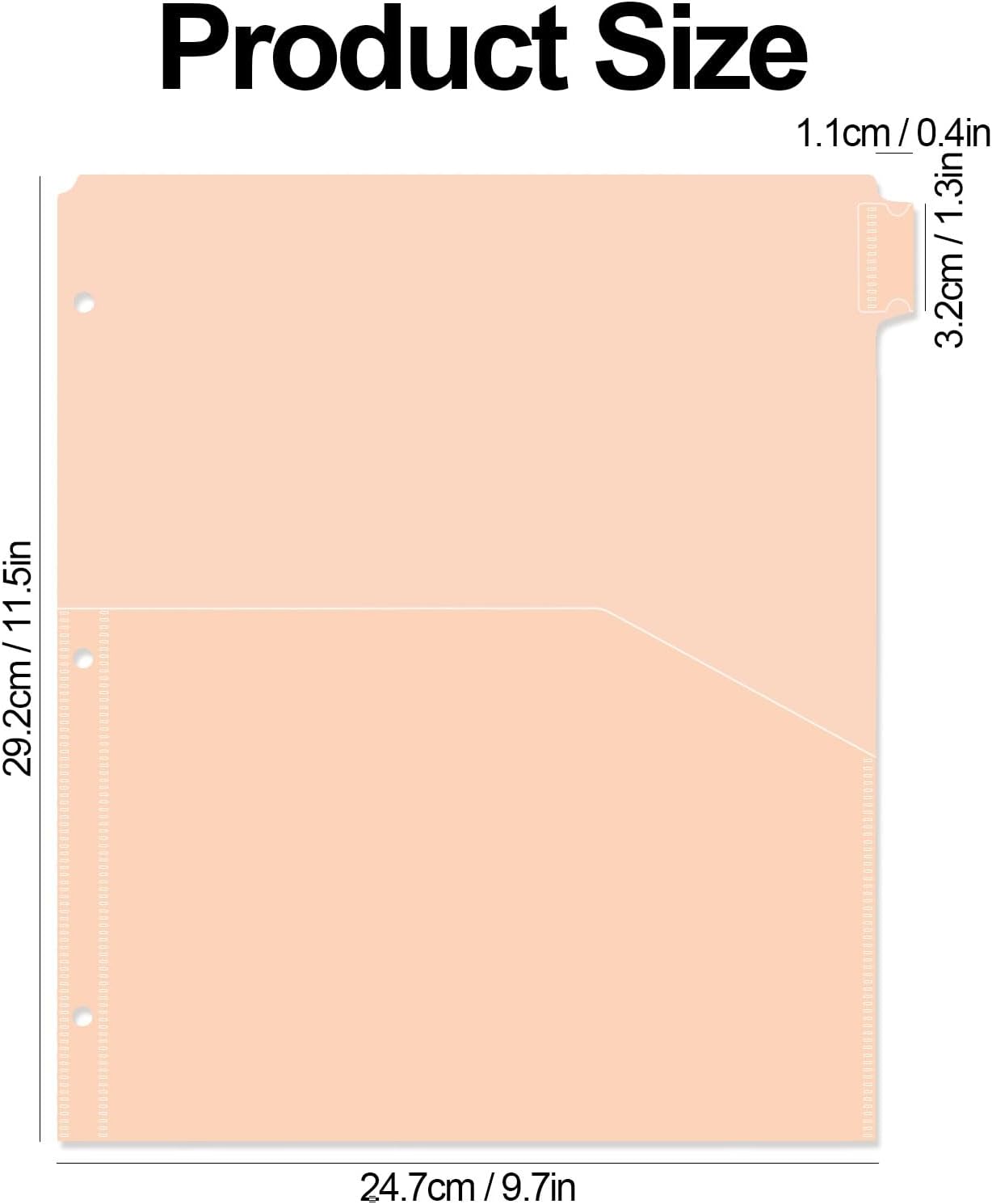- 【Fits 3 RIng Binders】3 Holes punched, fit in standard 3 ring binders. Our Plastic Pocket Dividers are measured 9.3 X 11.2 inches, providing the maximum coverage for your letter-sized paper. There are a total of 8 dividers for 3 ring binder with pockets in the package.