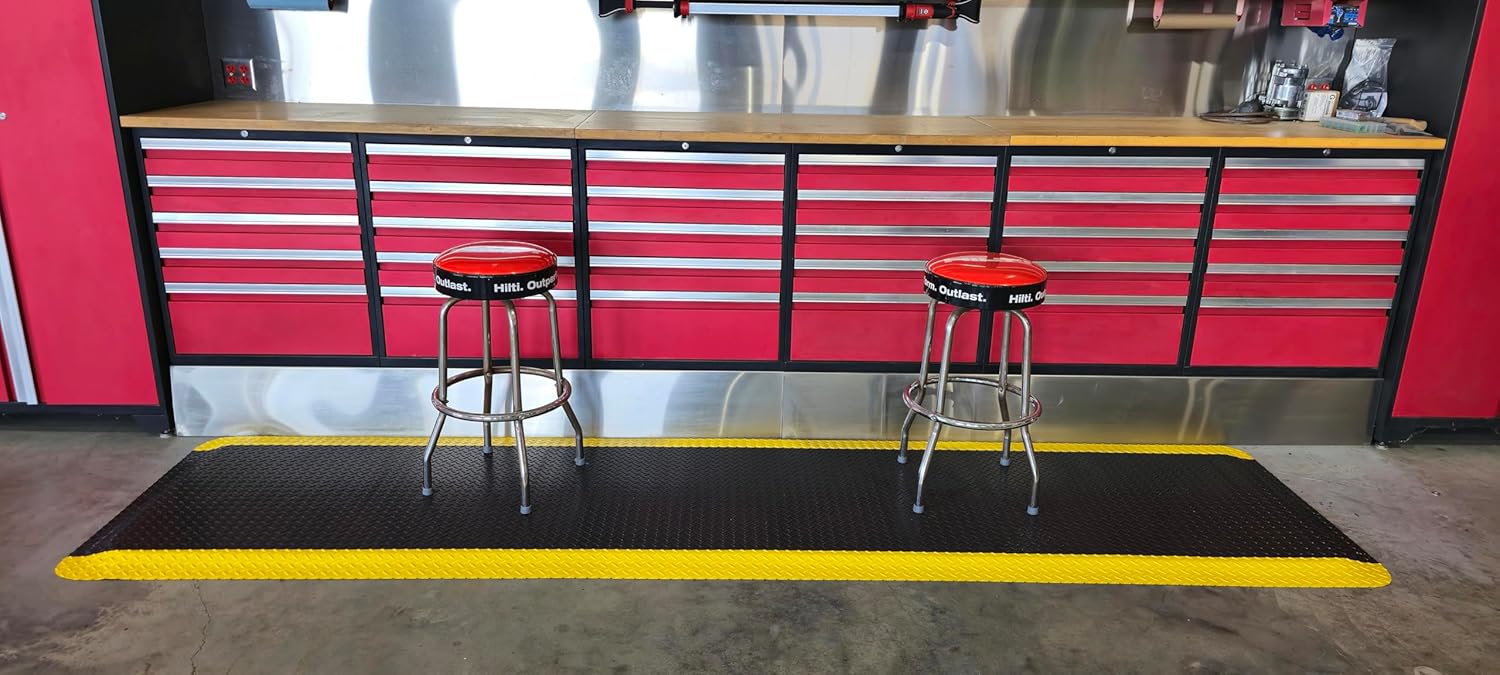 Rhino Mats, American Classic Diamond Anti-Fatigue Mats, Industrial Ergonomic Comfort Standing Mat for Work, Home, Garage, Office, Kitchen or Anywhere (Black/Yellow 9/16" Thick, 2 FT. x 16 FT.)