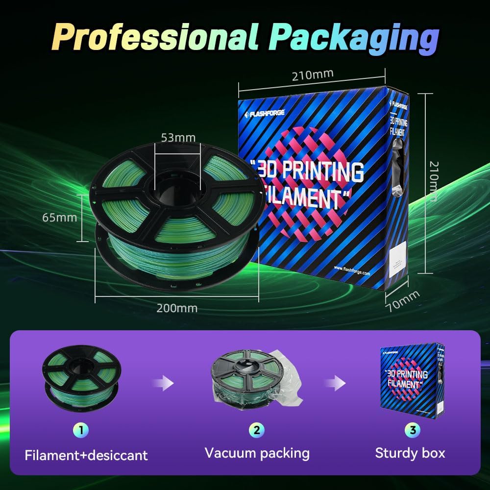 - 【Breathtaking Color Change Effects】FLASHFORGE HS PLA Multicolor filament combines fast printing with color variations that change when viewed from different angles and light, giving your prints a distinct visual appeal. Making it ideal for artistic projects and custom designs.