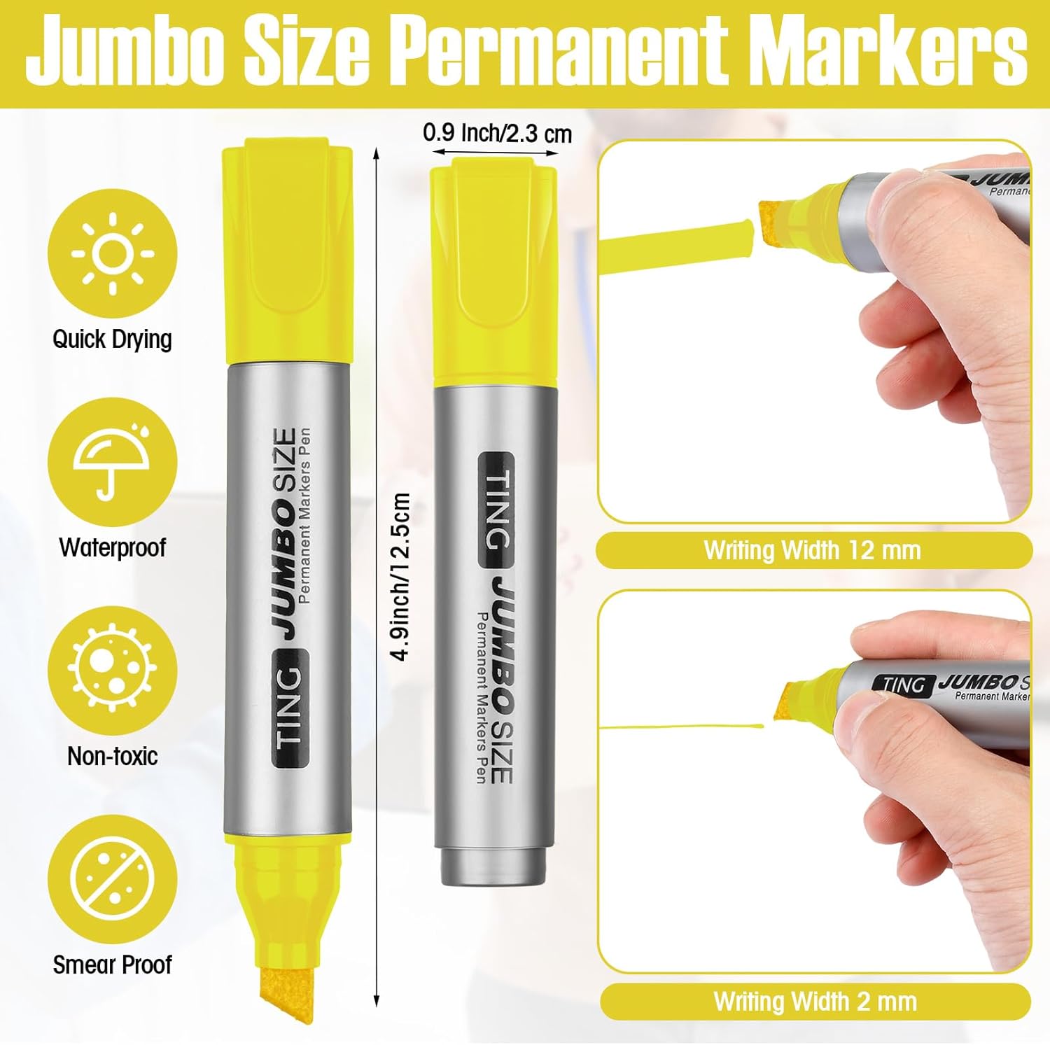 - Wide Chisel Tips and Yellow Ink: the wide chisel tips of our yellow markers are suitable for creating both thick and thin lines, offering a versatile writing or drawing experience; The yellow ink can provide a striking contrast against most colors, ensuring good visibility; It's a versatile choice suitable for many tasks and projects