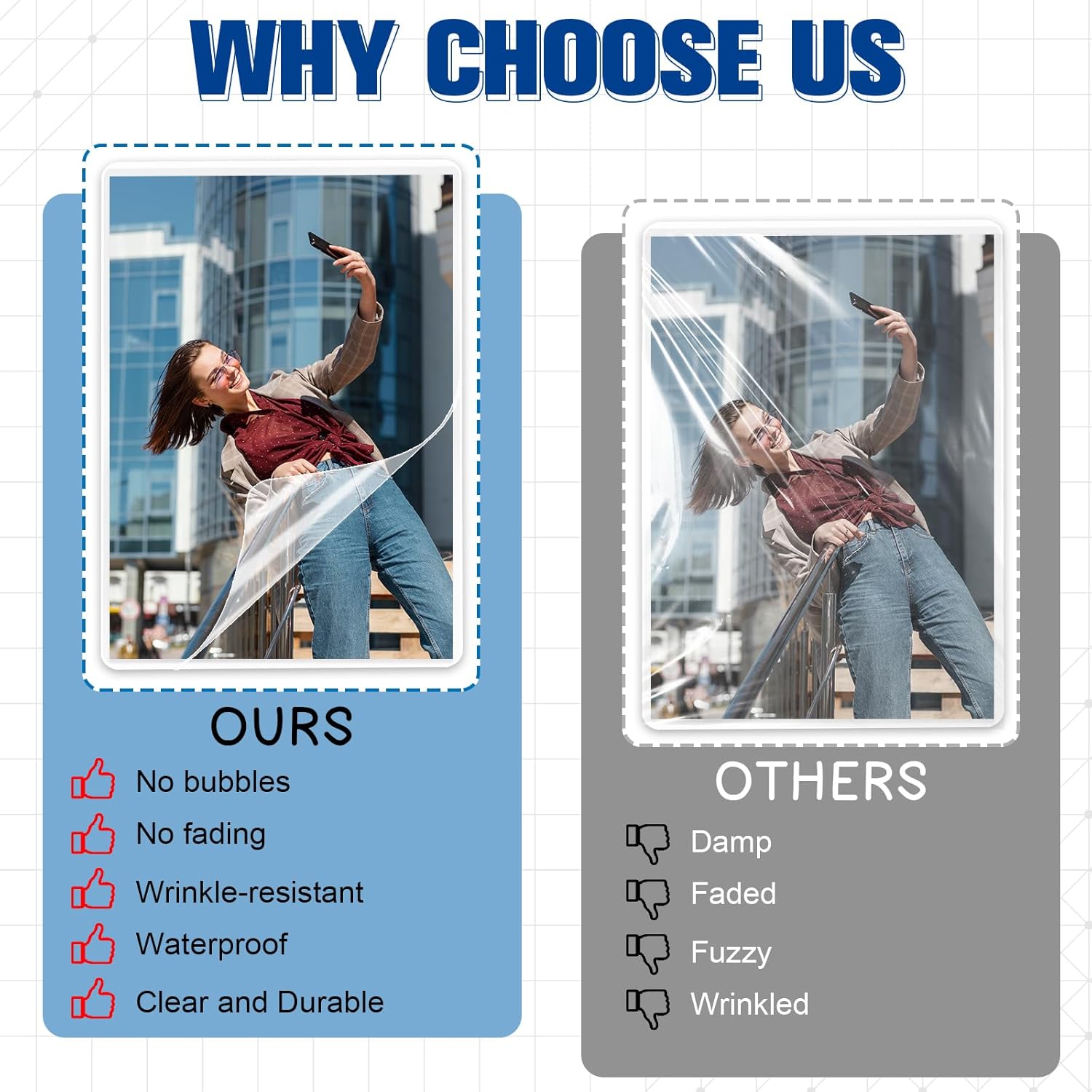 - Durable Material:These thermal laminate pouch are made from premium materials,Crafted to withstand high temperatures and resist liquid penetration, stain-resistant, and water-resistant, more effectively protect your business cards.The laminating pouch with loop sealing temperature is recommended to be 257°F-266°F.these thermal laminate pouch guarantee that your items remain safe and intact, making them an excellent choice for both professional and personal use.
