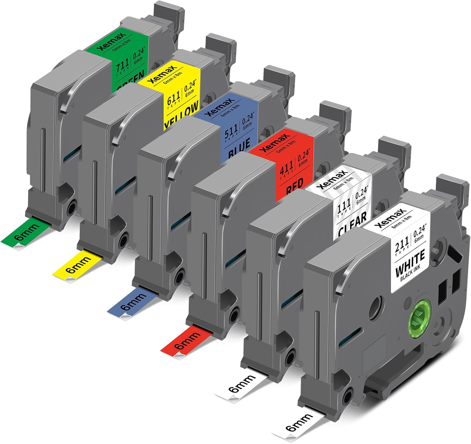 - Package include: 6 Pack Tz 6mm Multi-Color Label Tape ( 6 Colors in one set: Black on White, Black on Clear, Black on Red, Black on Blue, Black on Yellow, Black on Green (Compatible TZe211/TZe111/TZe411/TZe511/TZe611/TZe711))