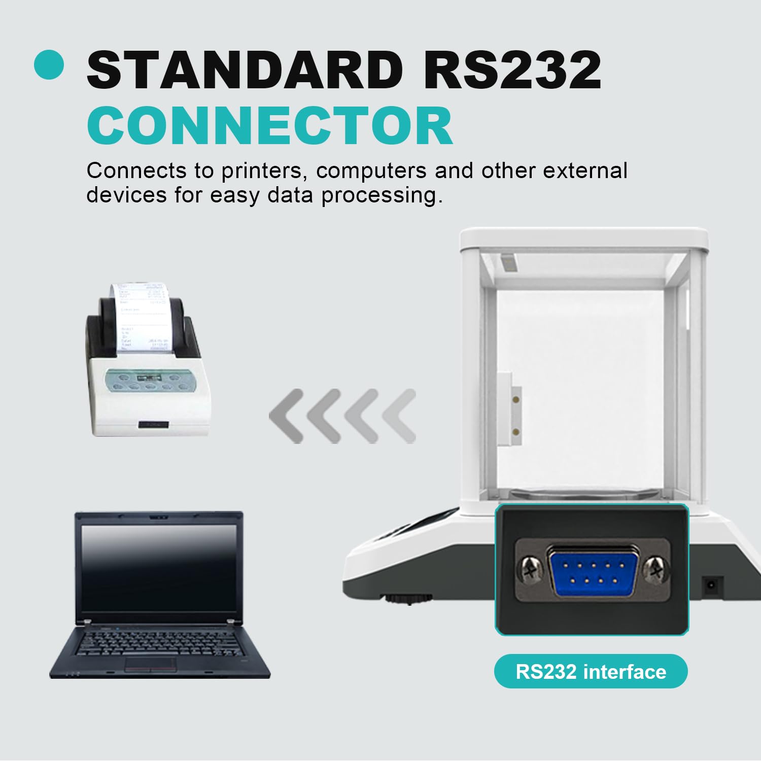 - 【COMPREHENSIVE FUNCTIONS】FA series of electronic balances support a wide range of unit of measure switching (g) grams, (ct) carats, (oz) ounces, and (mg) milligrams, and are equipped with an RS-232 interface for connecting to printers, computers, and other external devices (RS-232 cable is not included) to meet the needs of checkweighing, counting, percentage weighing, and a variety of other different weighing functions