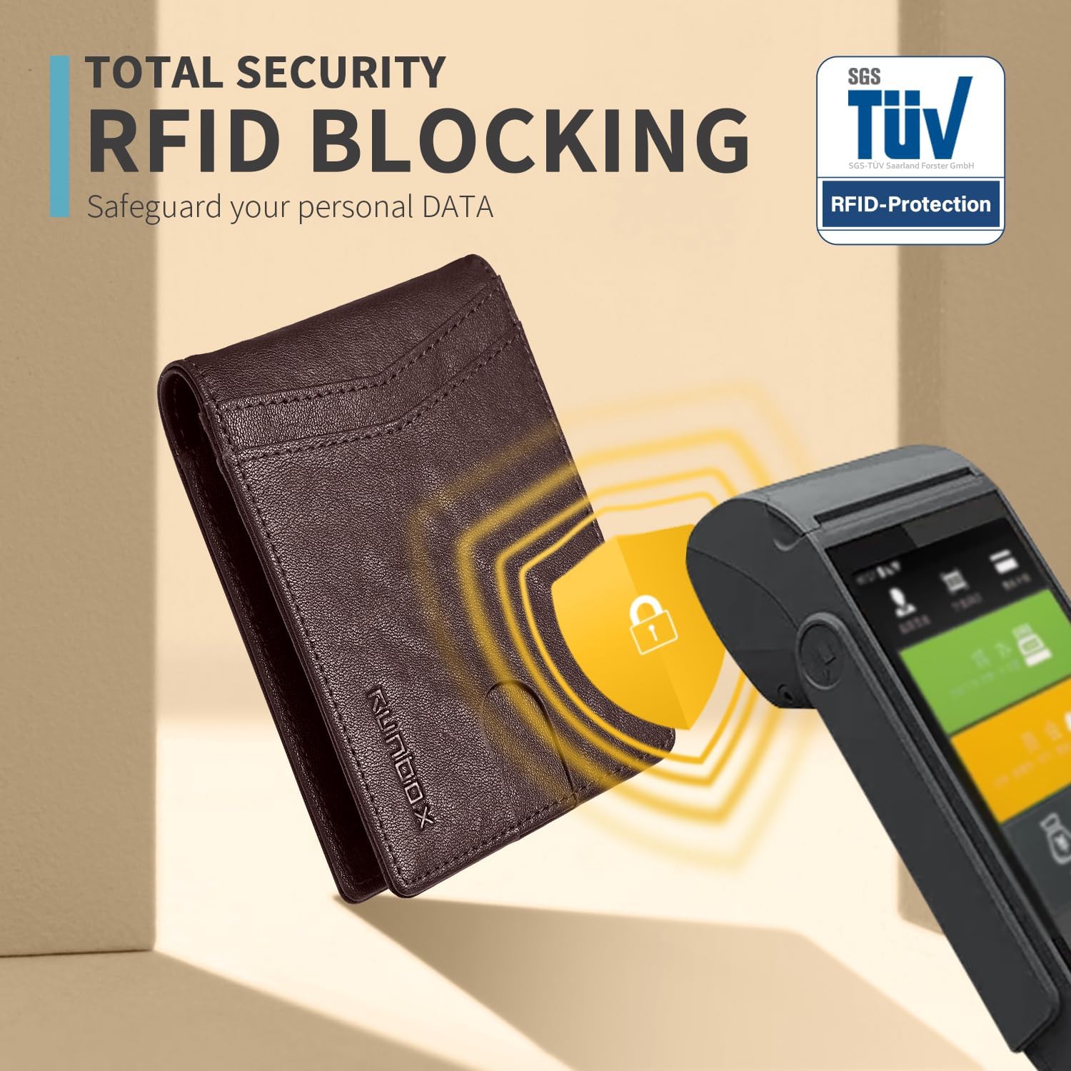 • RFID Blocking - Our wallets are equipped with advanced RFID SECURE Technology, a unique metal composite, engineered specifically to block 13.56 MHz or higher RFID signals and protect the valuable information stored on RFID chips from unauthorized scans. License and ID cards will be protected effectively. Blocking the 13.56 MHz band and protect against data theft by RFID scanners