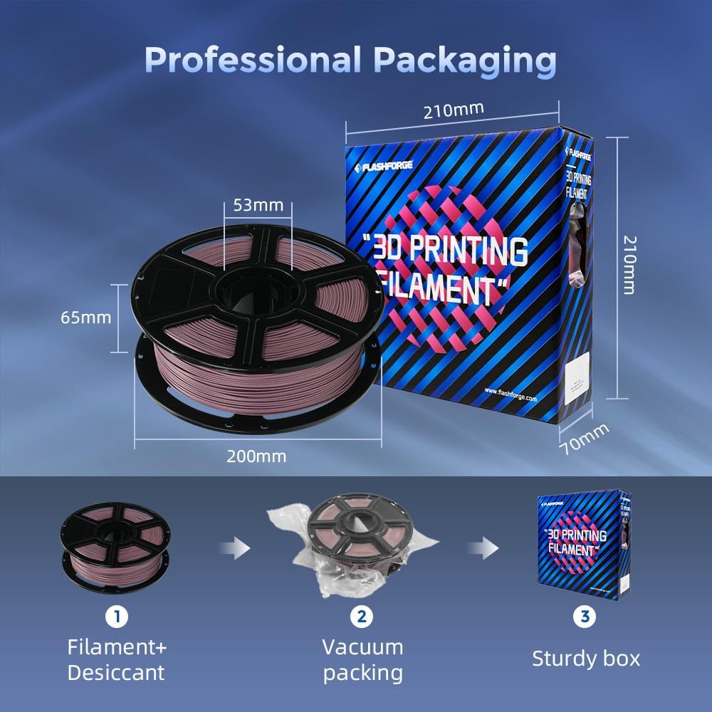 - 【Clog-Free & Bubble-Free】Manufactured using clog-resistant methods to guarantee a seamless and steady printing experience with these PLA filaments. Thoroughly dried for 24 hours before packaging and vacuum sealed with desiccant to safeguard the filament from moisture and achieve precise printing.