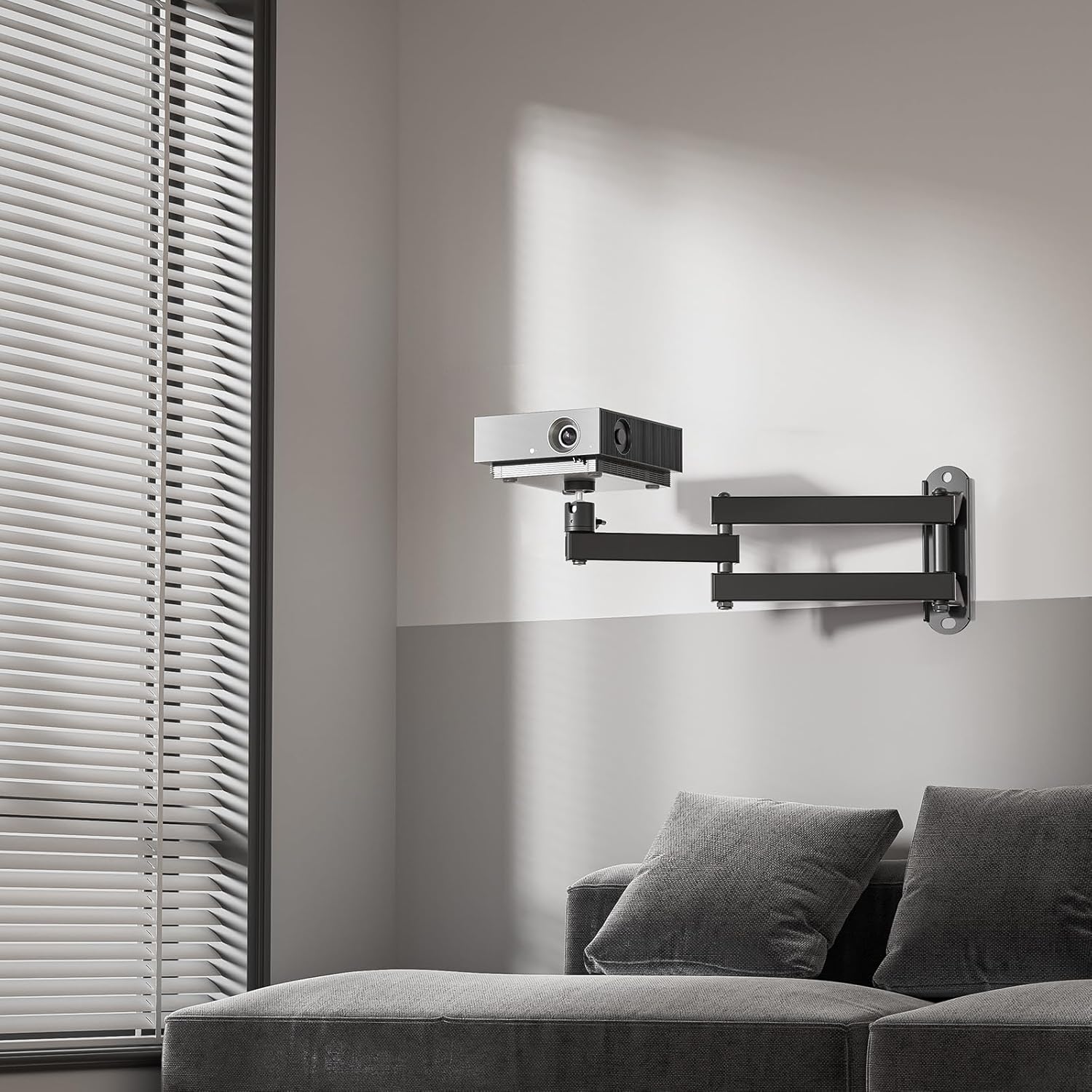 - EASY TO ADJUST: The wall mount projector stand for the projector is fully adjustable with tilt +/- 180 degrees and swivel +/- 180 degrees. The angle adjustment bracket allows 360 degrees of rotation