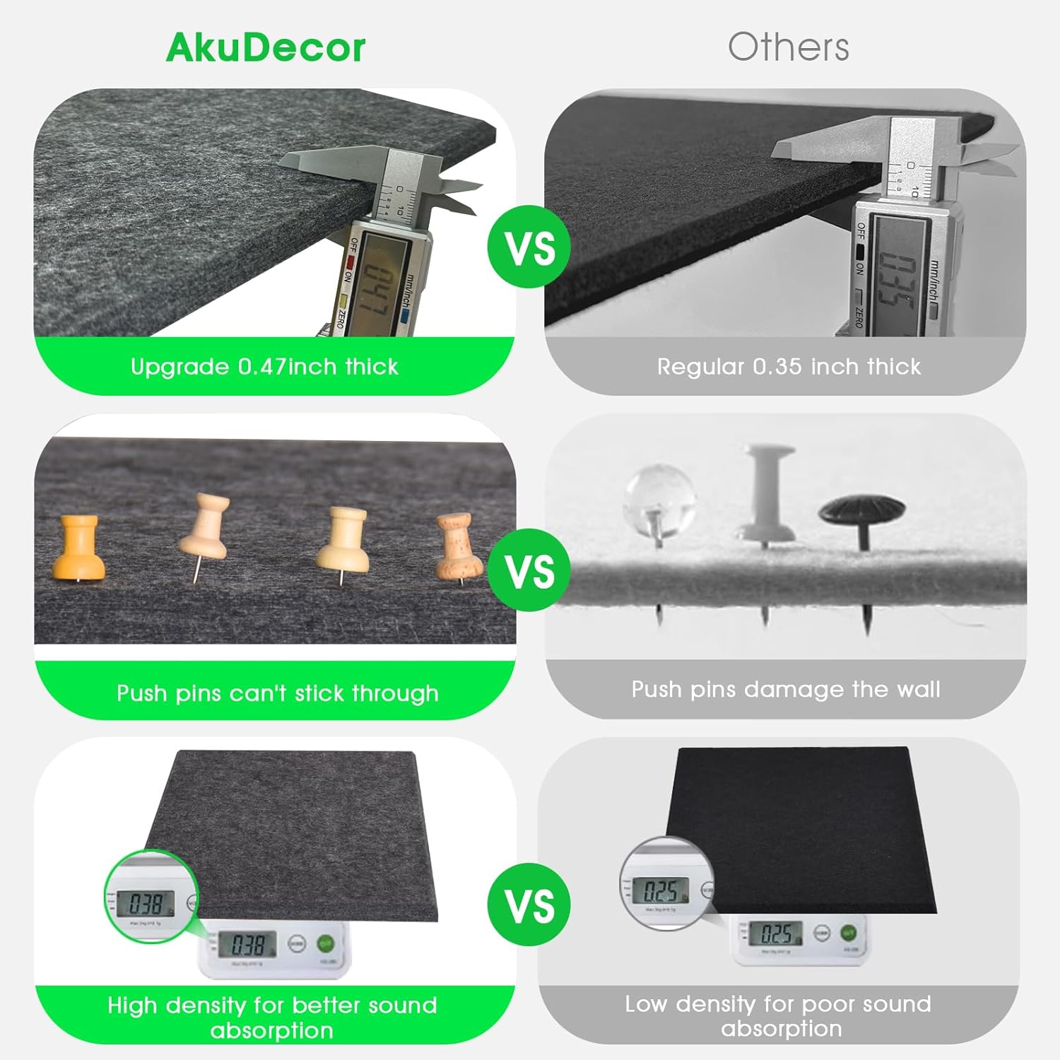 - 【Thickened Cork Boards】Our cork board alternatives have higher thickness (25% thicker) and density (35% denser) than traditional cork boards, which means better durability and sound absorption. It prevents push pins from sticking through the felt board and damaging the wall.