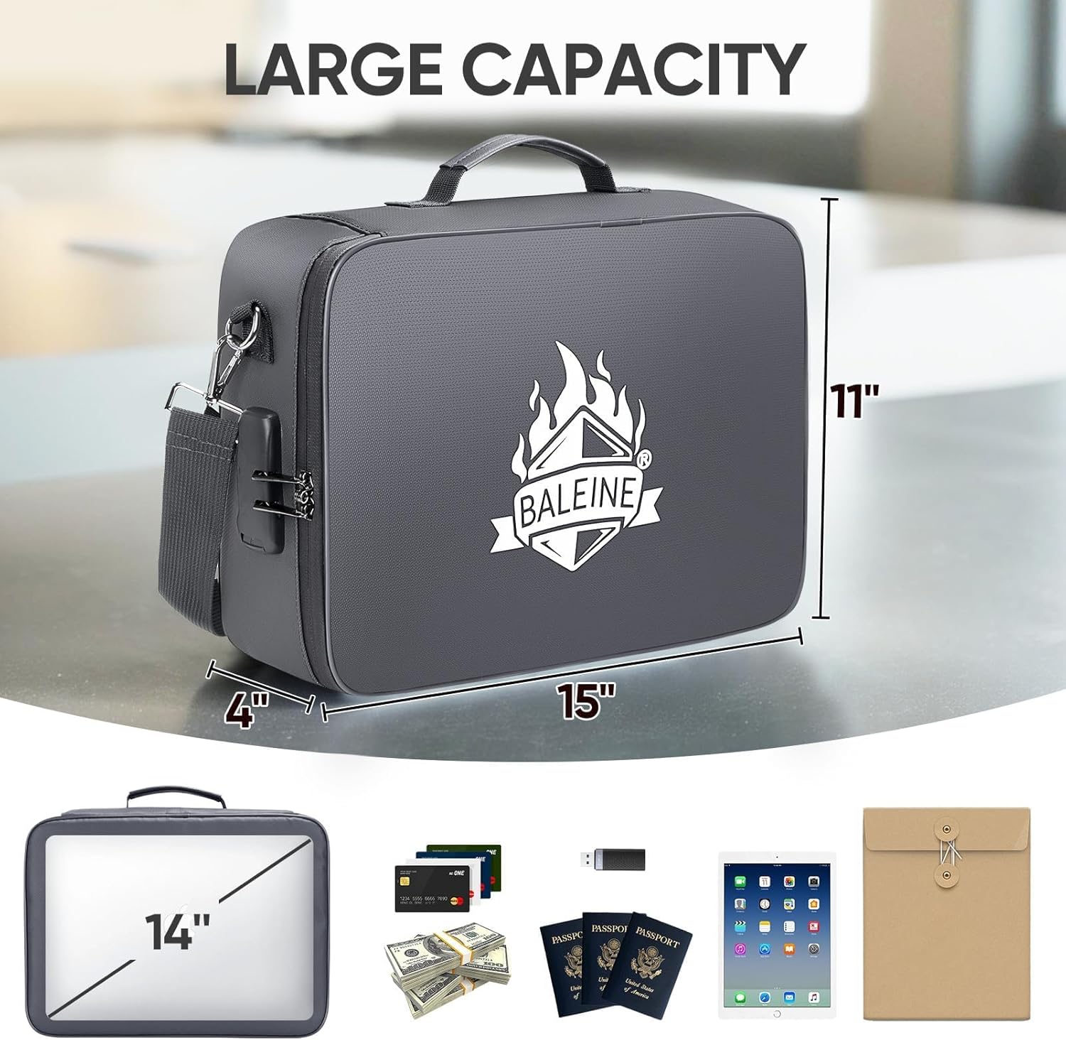BALEINE Fireproof Document Box with Lock, Portable Fireproof Document Bag Waterproof Fire Proof File Boxes for Documents, File Organizer Box for Important Paperwork (Gray, 15''x11''x4'')