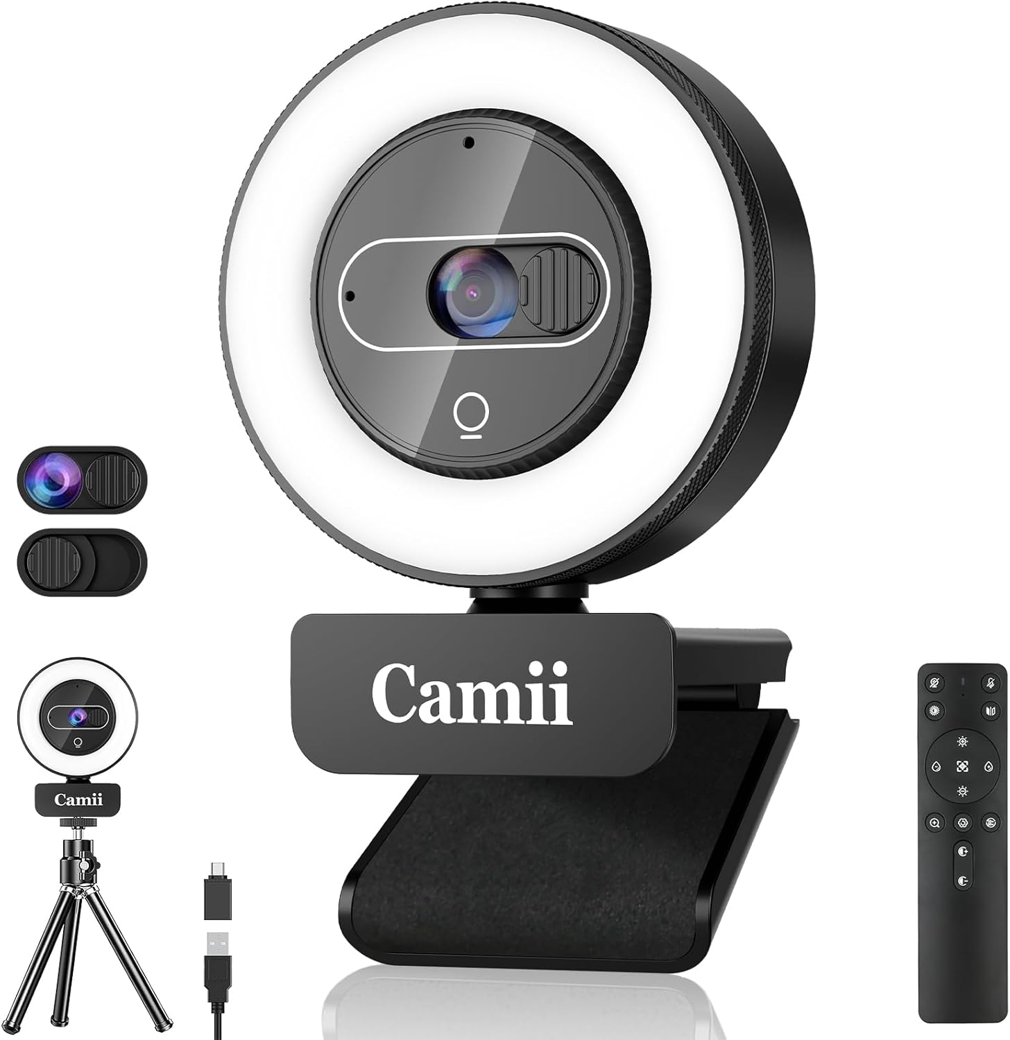 - [Two Colours & Three Levels of Adjustable Lighting]: The Camii 4K camera has a built-in halo that supports two colours and three levels of brightness for lighting options. Different lighting effects can be achieved by touch control or remote control. Even in dimly lit lighting environments, the monitor camera can help illuminate your scene without glare.
