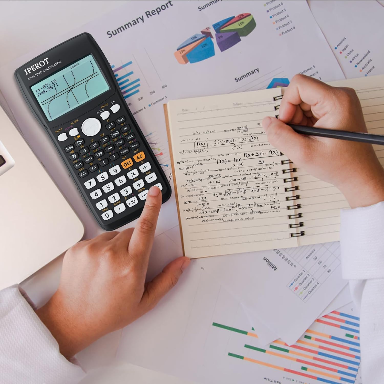 - Powerful Multi-Function Modes:IPEROT graphing calculator features 10 built-in function modes: 1: Calculate, 2: Complex, 3: Statistics, 4: Base-N, 5: Equation, 6: Table, 7: Matrix, 8: Vector, 9: Graphic, and 10: G-Solve. Whether you are a student, engineer, or financial analyst, this calculator meets all your needs, making it an ideal tool for mathematical and scientific calculations