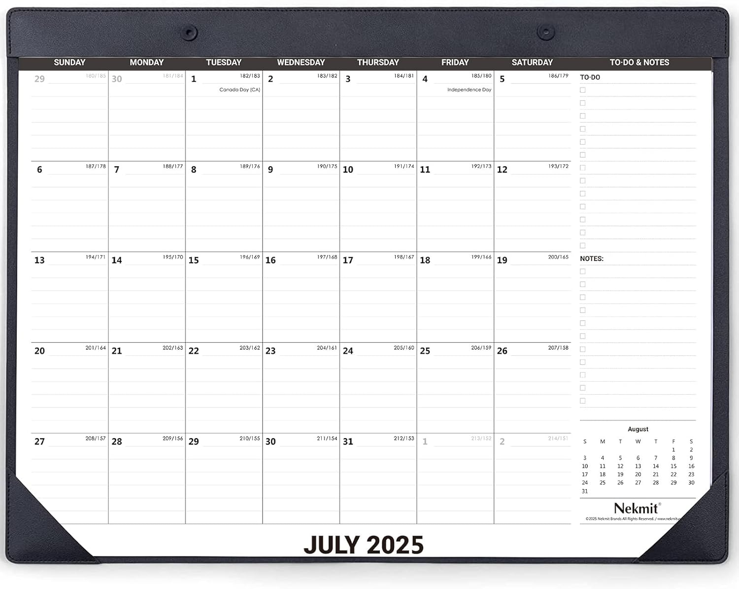 Nekmit Large Desk Calendar 2025-2026 with PU Faux Leather Desktop Mat, Runs From July 2025 - June 2026, Big Desk Pad Calendar 21 x 16 1/2 Inches for Home and Office