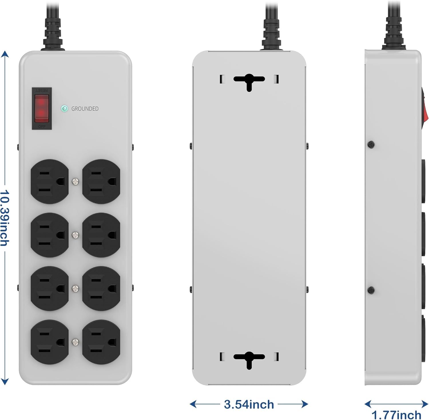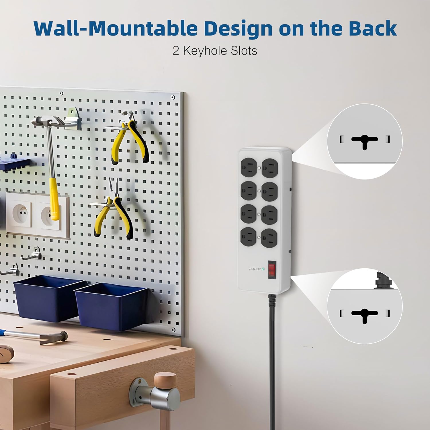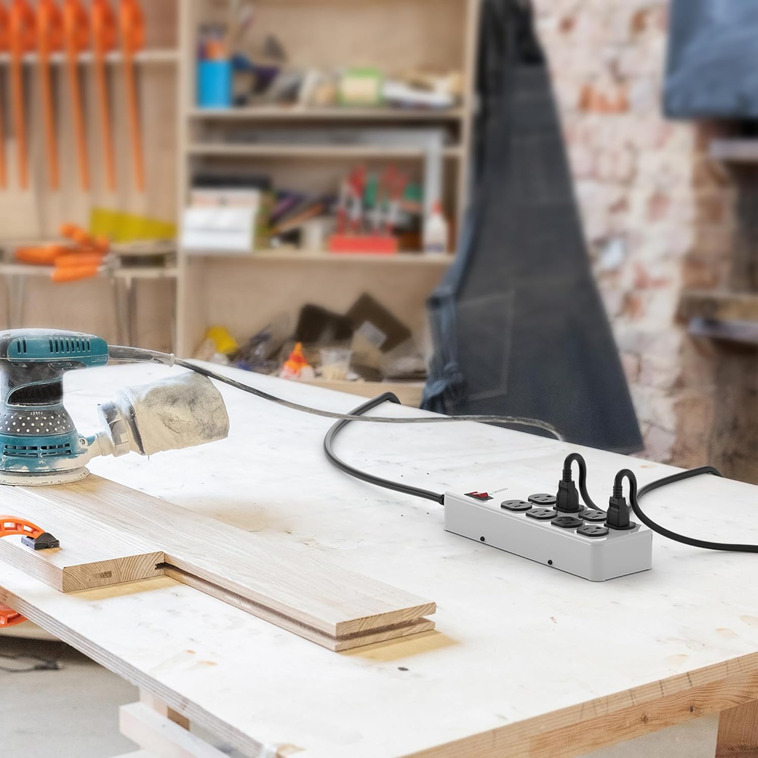 - High Capacity Powering: Equipped with 8 AC Outlets, this tool power strip surge protector has an electrical rating of 15A 125V 60Hz 1875W, combined with a 10ft 14AWG Heavy Duty Power Cord. It's the ultimate solution for all your power needs in heavy-duty settings, embodying the essence of a shop power strip heavy duty 15 amp.