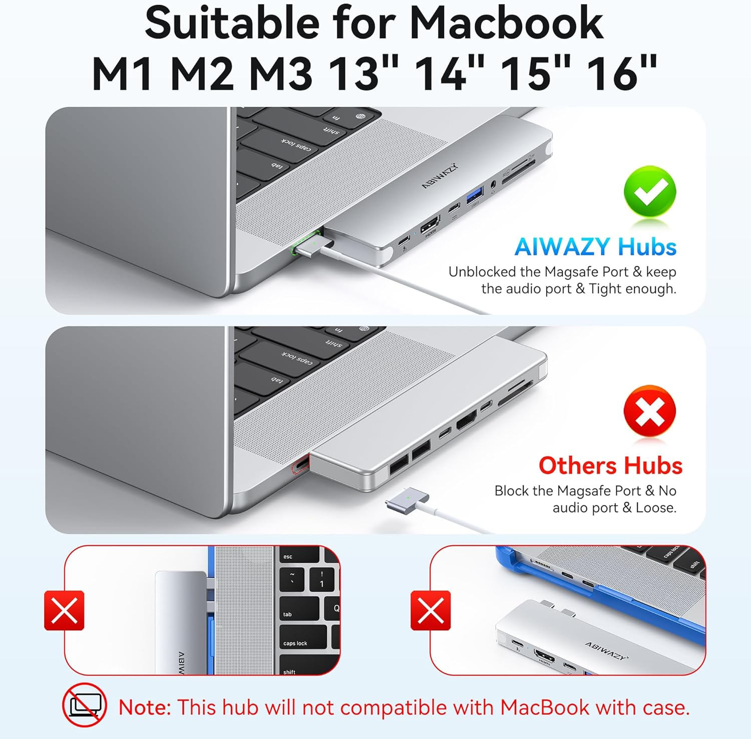 - MacBook Pro Adapter with Magnetic Charging Port Compatibility: This MacBook Pro USB adapter is designed to seamlessly work with the latest MacBook models without obstructing the magnetic charging port. It is fully compatible with MacBook Pro Air models from 2016 to 2024, ensuring a hassle-free experience. Please note: This adapter may not fit if your MacBook is encased