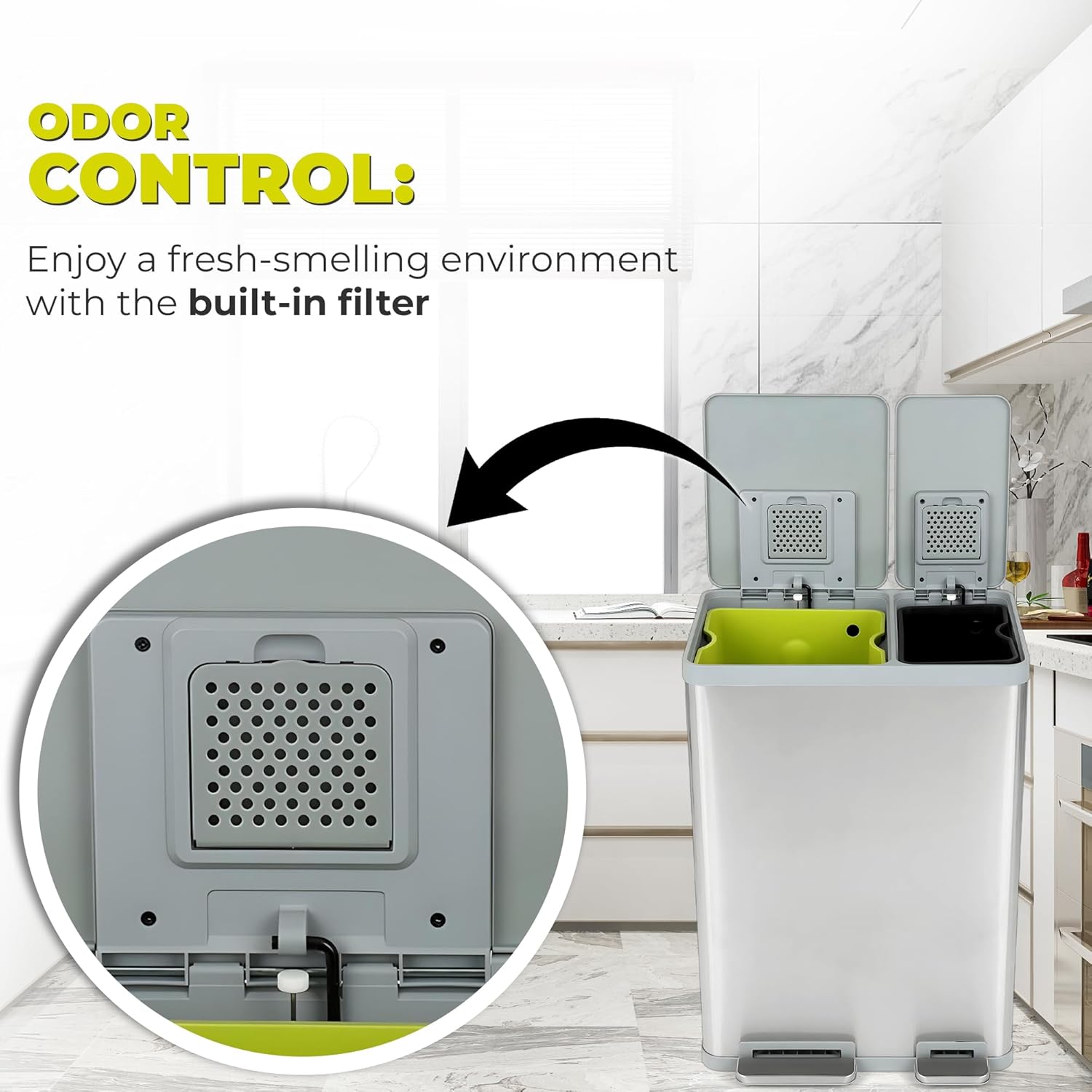 - BUILT IN FILTER FOR ODOR CONTROL.